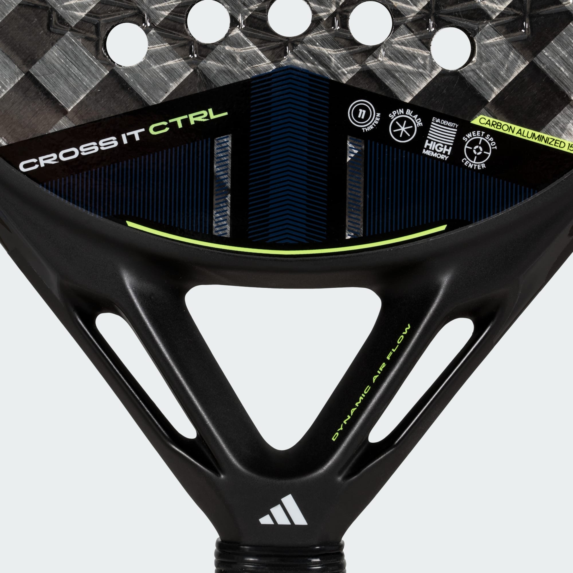 A Cross It CTRL 3.4 utiliza todas as tecnologias desta famosa gama adidas para otimizar o controlo. O aperfeiçoamento aerodinâmico do Dynamic Air Flow, a pega Power Extra Grip alargada e a disposição 11 Thirteen dos orifícios tornam esta raquete verdadeiramente única. Além disso, o Spin Blade Mould, uma textura 3D na superfície da raquete, assegura um efeito excecional.