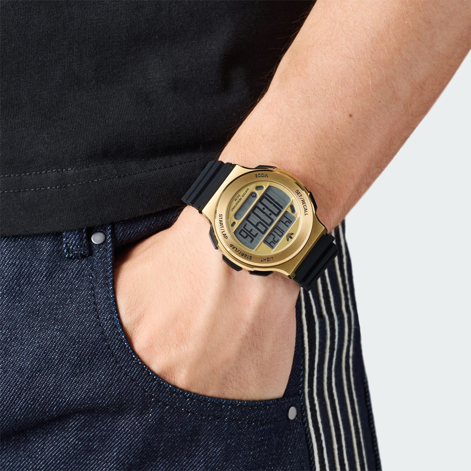 Um relógio digital elegante que podes usar debaixo de água.