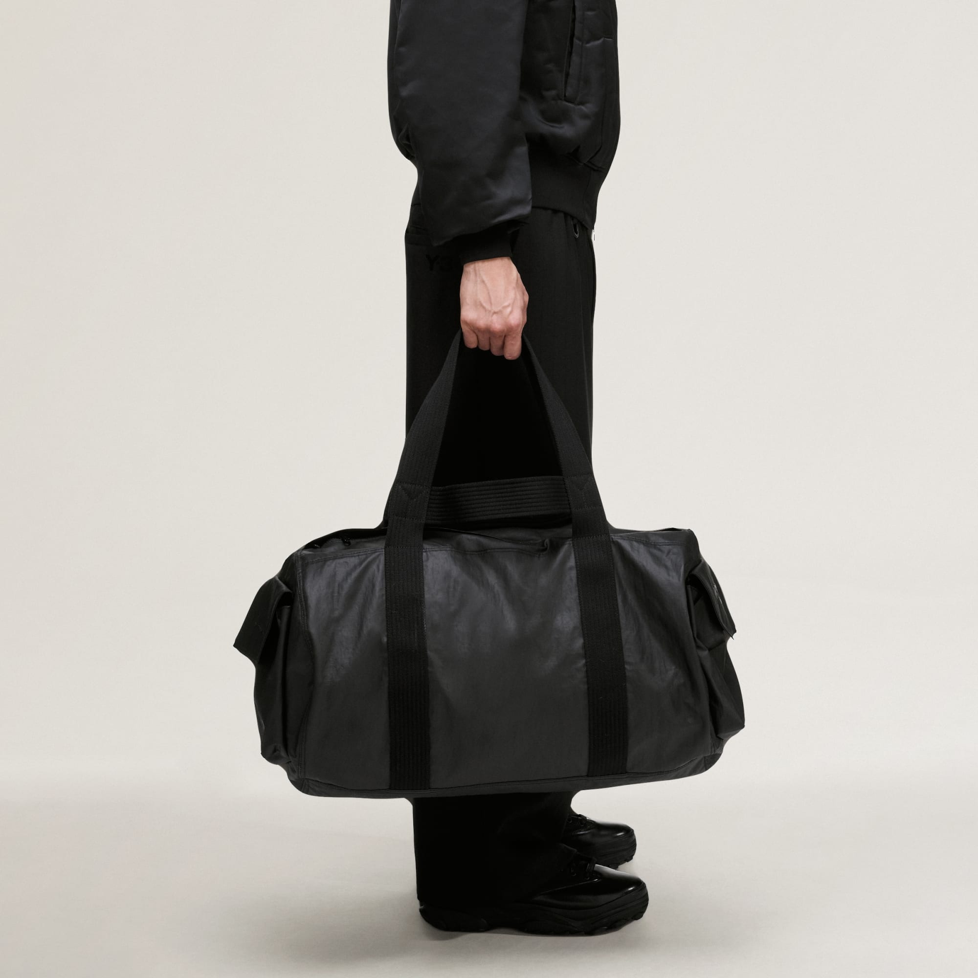 Apresentamos a mala de desporto Y-3, uma reinterpretação arrojada de uma silhueta clássica que se inspira no design utilitário do vestuário de trabalho. Fabricado em tecido de nylon enrugado resistente à água, este saco oferece durabilidade com uma textura distinta. Inclui dois bolsos laterais com abas assimétricos com fechos de aba magnética para arrumação de acesso rápido, enquanto um bolso com fecho oculto no exterior mantém os objetos essenciais discretos. O espaçoso compartimento principal abre-se com um fecho de correr para revelar um interior totalmente forrado, equipado com dois bolsos de rede e um bolso com fecho com argola em D, adequado para organizar objetos mais pequenos. As pegas resistentes permitem um transporte fácil. O logótipo Y-3 e Yohji Yamamoto impresso em silicone acrescenta um toque limpo e tátil à marca, completando o visual.