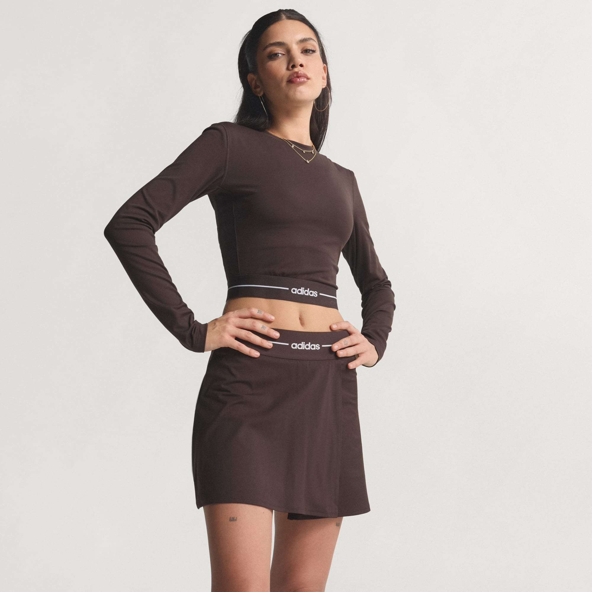 O estilo alia-se à funcionalidade com o <A1>adidas</A1> Hyperglam Skort. Concebida para se mover contigo, combina o visual glamoroso de uma saia com a cobertura de uns calções incorporados, permitindo uma transição fácil das sessões de ginásio para ambientes sociais. Uma cintura alta proporciona uma silhueta suave e uma sensação de segurança e apoio, enquanto o elástico jacquard com logótipo linear acrescenta um acabamento subtil da adidas. O design 2 em 1 foi concebido para um estilo versátil e um bolso discreto para guardar as chaves ou os cartões fica perto de ti quando estás em movimento. Com a tecnologia Climacool que absorve o suor, este skort mantém-te fresca durante os treinos ou quando estás com os amigos. Faz parte da gama Hyperglam e combina moda e praticidade numa única peça versátil. Concebida pela adidas para estilos de vida ativos.