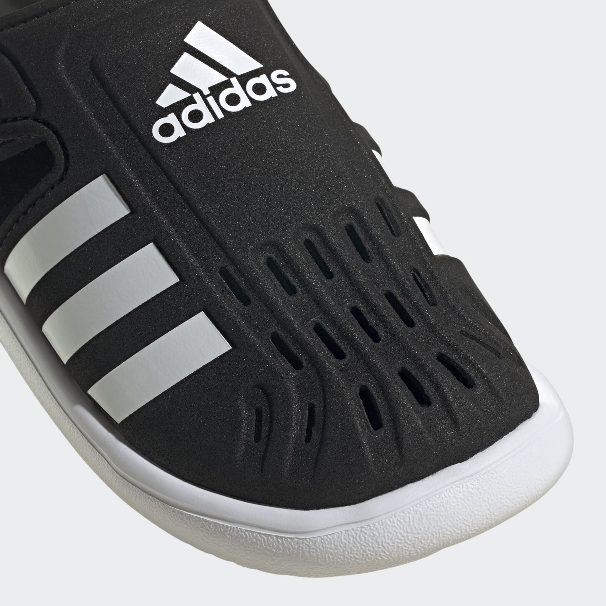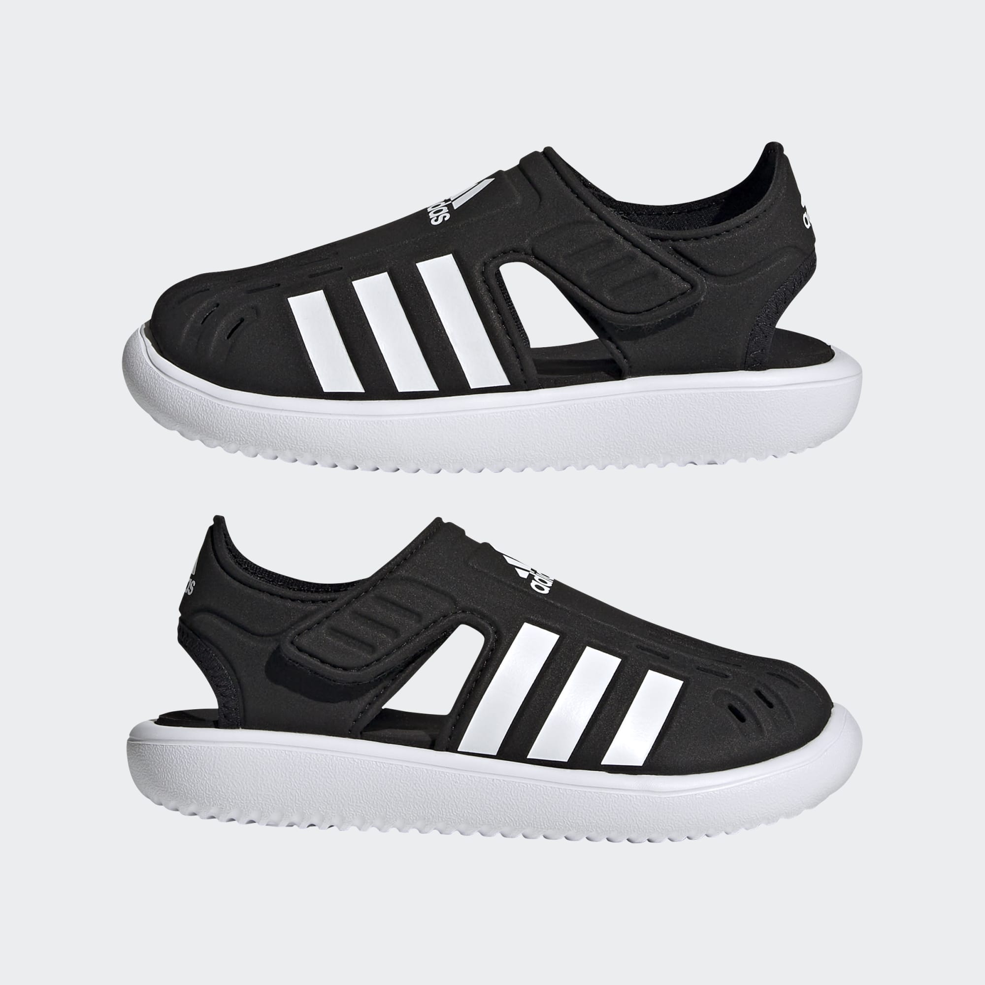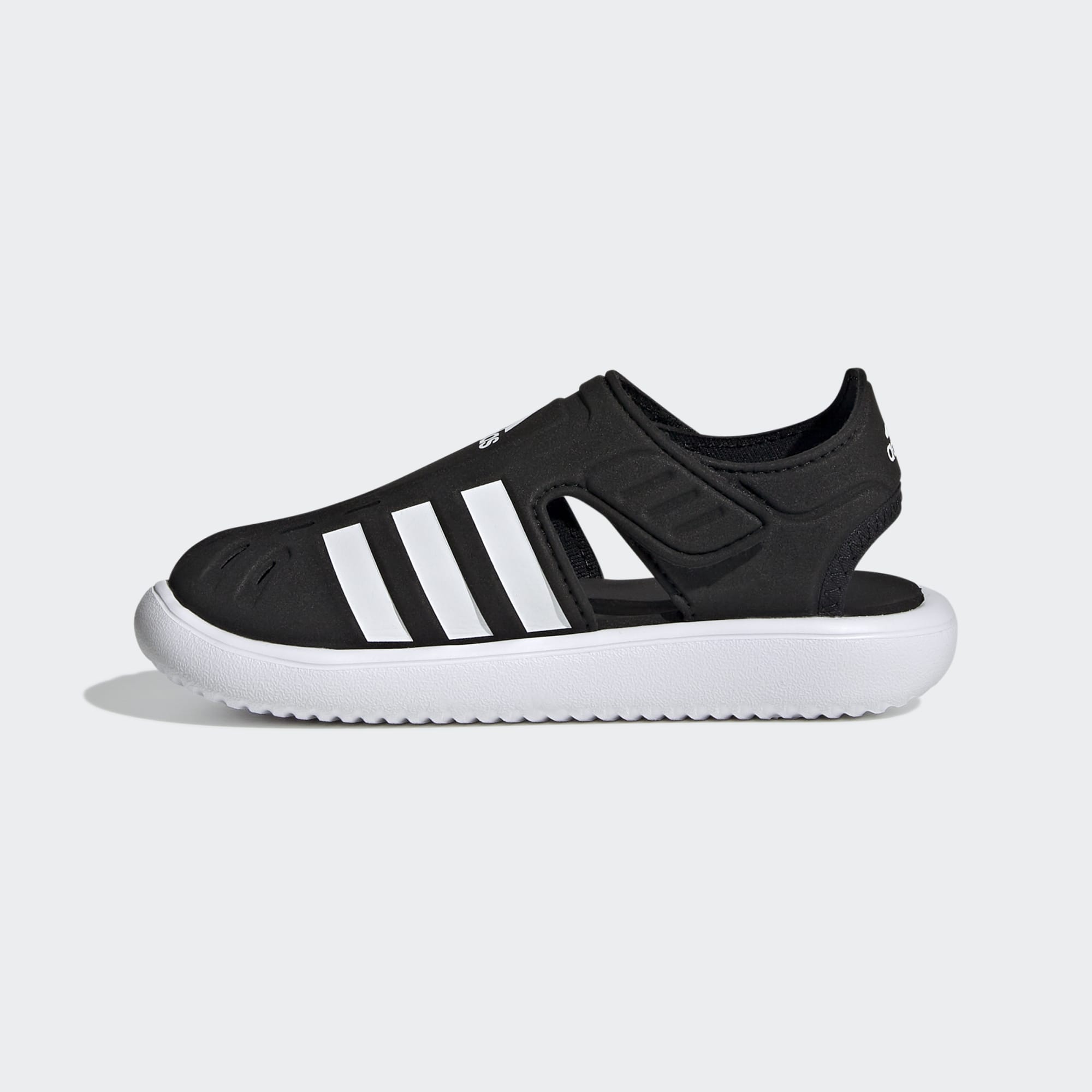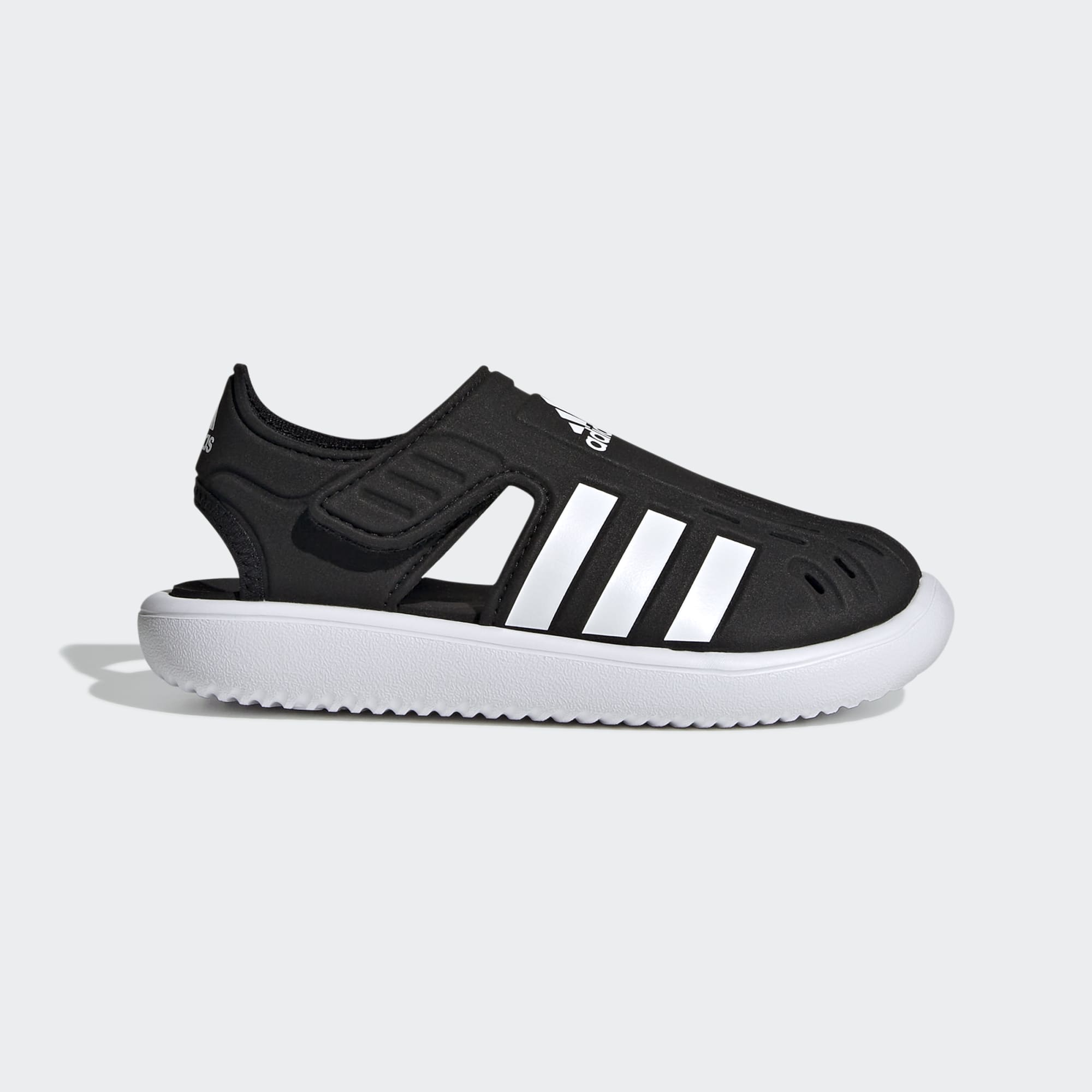 Campismo e canoagem. Mergulhar e nadar. Sim, estás de férias. As asas de velcro nestas sandálias adidas para criança criam um ajuste confortável, mesmo com os pés molhados. A frente fechada com aberturas para secagem rápida mantém os dedos secos e protegidos dos objetos aguçados que podem estragar o dia.
