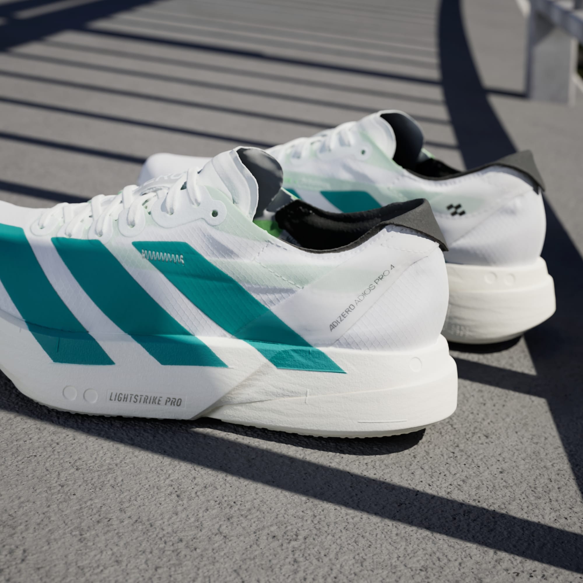 Comprovadamene a linha das sapatilhas mais vitoriosas do mundo, a linha Adizero Adios Pro é o pináculo das sapatilhas de corrida Adizero. As Adios Pro 4 foram feitas para corredores velozes que querem experimentar a velocidade máxima, com funcionalidades melhoradas desenhadas para otimizar a eficiência da corrida. As ENERGYRODS 2.0 com carbono proporcionam uma transição irrepreensível do calcanhar à biqueira, para uma passada enérgica e eficiente. Na entressola, um novo ponto convexo oferece uma economia de corrida melhorada. A camada dupla da nossa ultraleve LIGHTSTRIKE PRO assegura amortecimento em cada passada rápida, ajudando a manter a energia mais tempo. As sapatilhas assentam numa sola de borracha Continental™, para uma transição antiderrapante durante a impulsão, bem como LIGHTTRAXION, tecnologia desenhada para reduzir o peso sem sacrificar a aderência.
