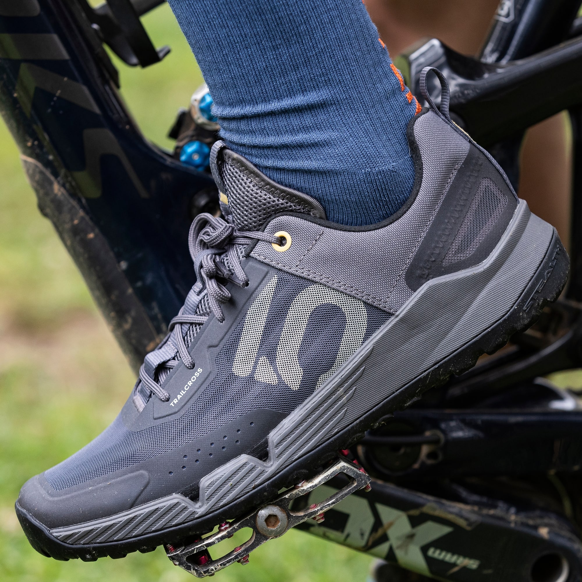 Desenhadas a pensar em BTT e cicloturismo, as sapatilhas de BTT Trailcross LT Five Ten da adidas são as sapatilhas de ciclismo leves e respiráveis que podes usar durante todo o dia. São suficientemente rígidas para uma pedalada eficiente, e incluem uma biqueira flexível para conforto ao caminhar. A sola de borracha Stealth Phantom e o rasto Dotty oferecem um controlo fiável sobre os pedais, ao passo que o pormenor do rasto na biqueira e no calcanhar confere tração todo-o-terreno fora da bicicleta. O topo em malha respirável e o sistema de drenagem de água oferecem conforto e secagem rápida, ao passo que a caixa da biqueira reforçada adiciona paz de espírito em terreno irregular. Independentemente de onde a pedalada te levar, a entressola com amortecimento proporciona conforto dentro e fora da bicicleta. Aperta os atacadores e explora. Este produto contém pelo menos 20% de reciclado. Ao reutilizar materiais que já foram criados, ajudamos a reduzir os resíduos, a nossa dependência de recursos finitos e a pegada dos produtos que fabricamos.