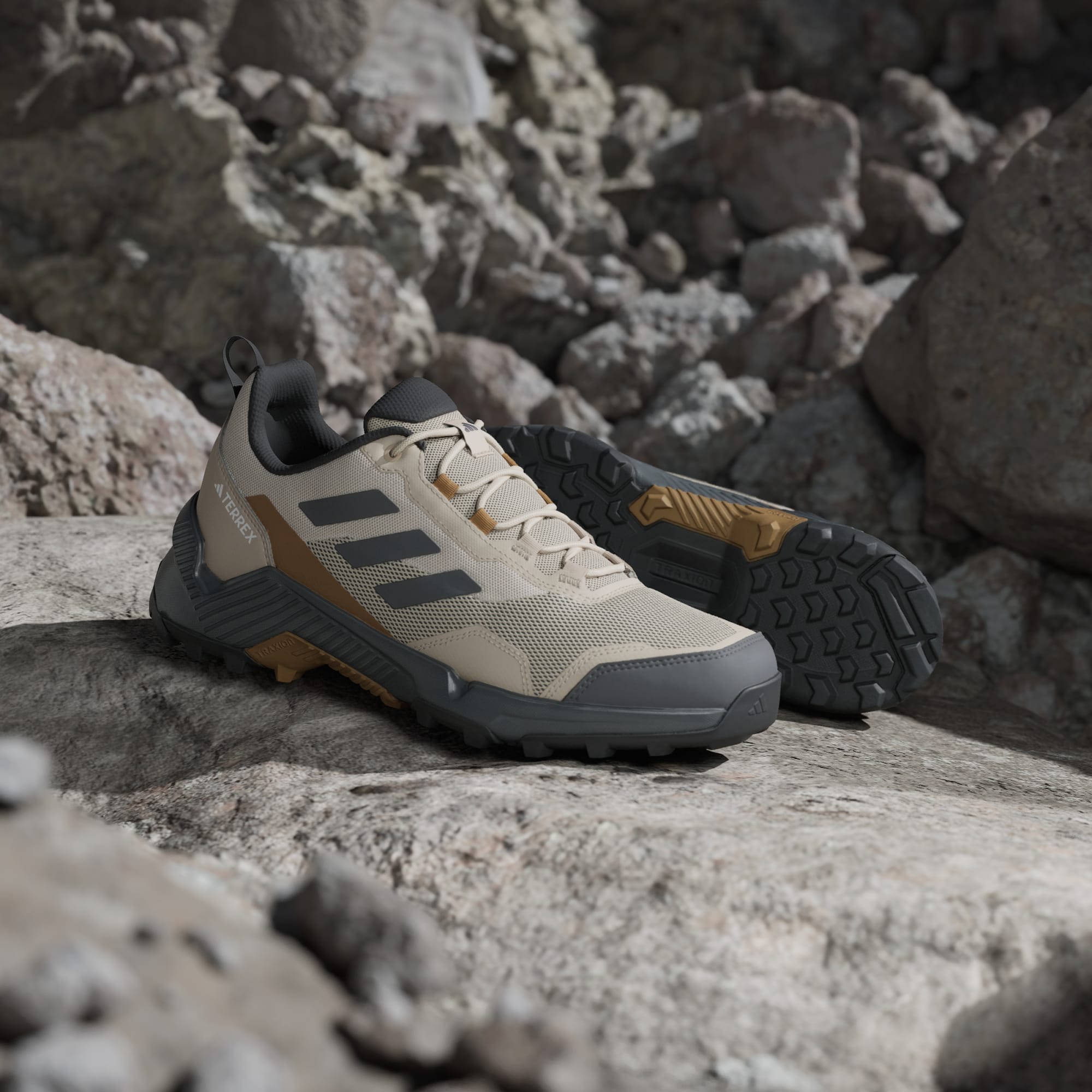 Explora tudo com estas leves sapatilhas de caminhada adidas. Os trilhos enlameados e as subidas rochosas não te vão parar com estas sapatilhas orientadas para o conforto. A sola Traxion foi feita para terreno irregular, ao passo que a malha resistente às abrasões protege os teus pés, seja nos trilhos ou num passeio no bosque. Feito com uma série de materiais reciclados, o topo inclui pelo menos 50% de conteúdo reciclado. Este produto representa uma das nossas soluções para ajudar a acabar com o desperdício de plástico.