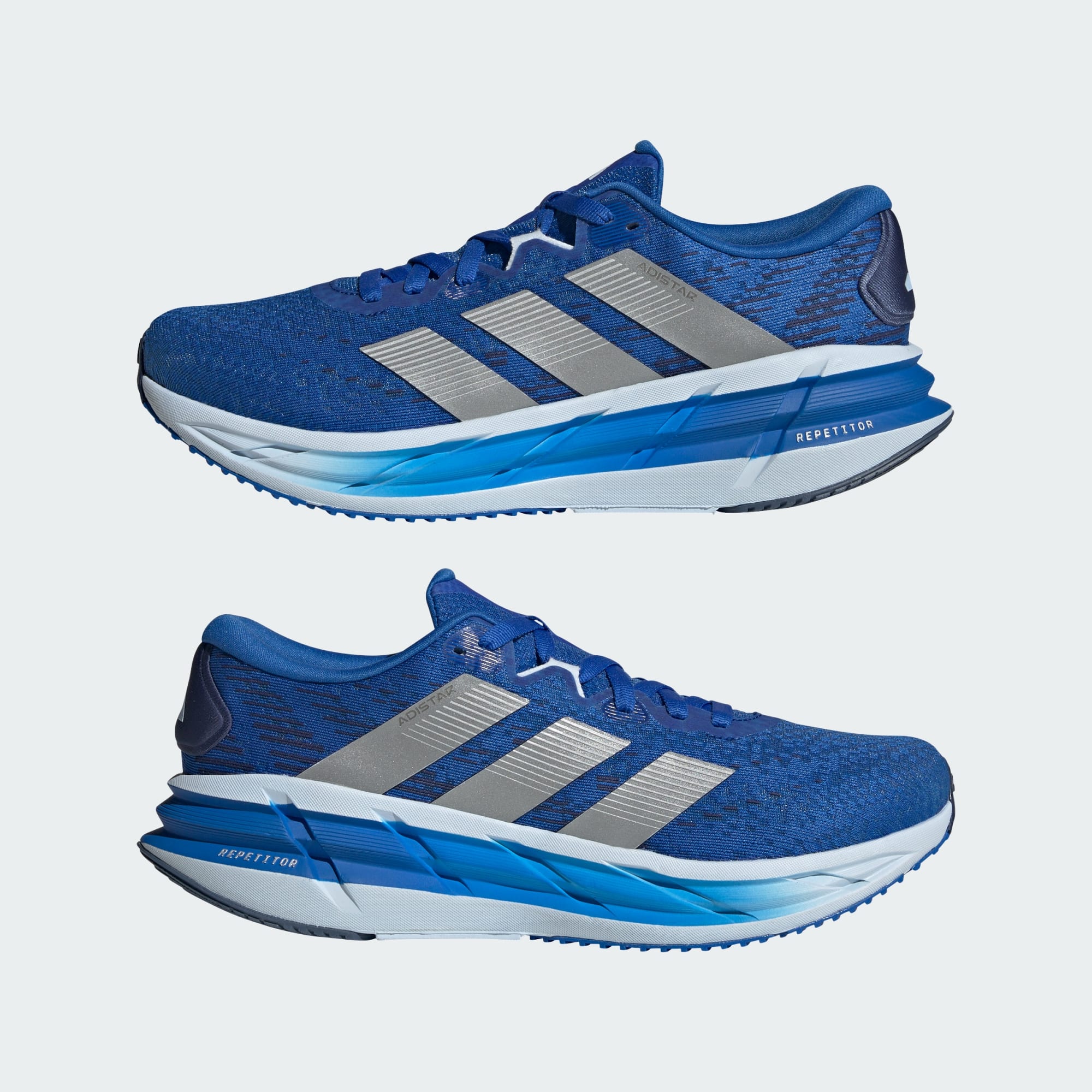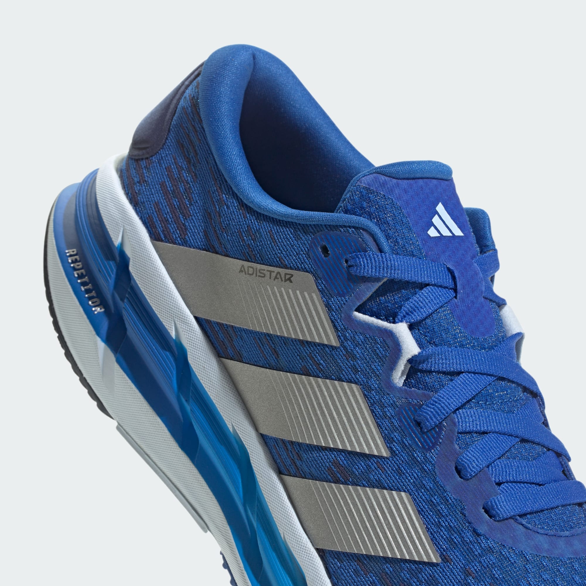 A entressola Repetitor 2.0 de comprimento total tem uma espuma macia e altamente amortecida com uma resistência melhorada. O Repetitor mantém os atletas em movimento. Entretanto, a sola de borracha Adiwear foi concebida com zonas melhoradas para uma maior durabilidade.