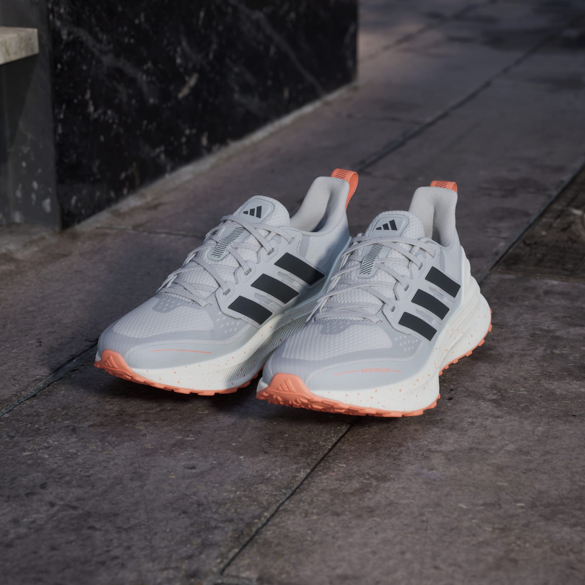 Explora além dos caminhos batidos com estas sapatilhas de running adidas. Com uma sola Adiwear com sulcos e um topo impermeável que repele os salpicos e a lama, levam-te dos passeios aos trilhos do parque. A cada passo, o amortecimento Bounce oferece conforto e flexibilidade otimizados. Pormenores refletores brilham em condições de luminosidade baixa. Este produto inclui um mínimo de 20% de materiais reciclados. Ao reutilizar materiais já criados, ajudamos a reduzir o desperdício e a nossa dependência de recursos finitos, diminuindo a pegada ecológica dos produtos que fabricamos.