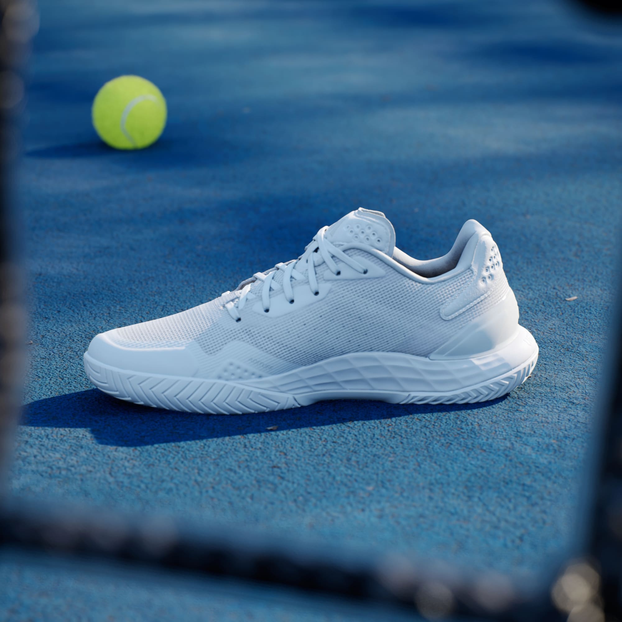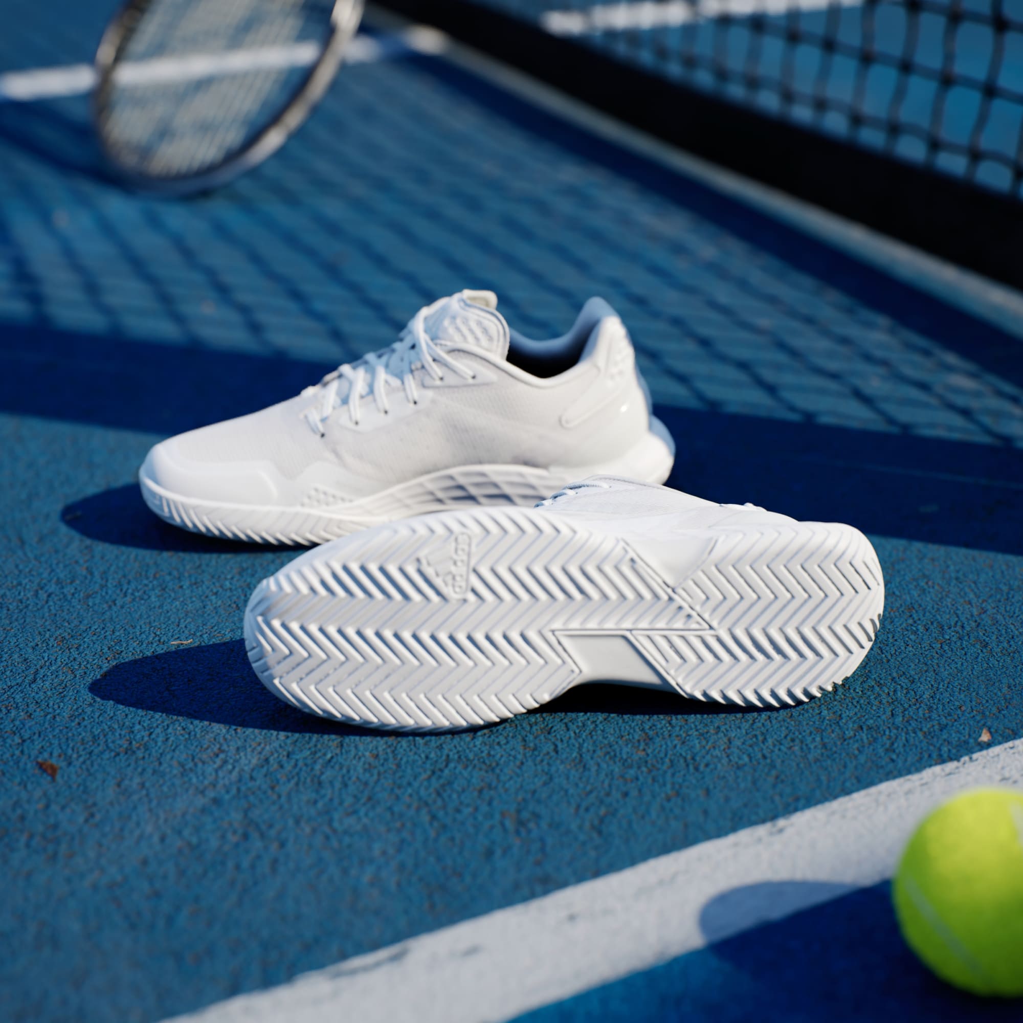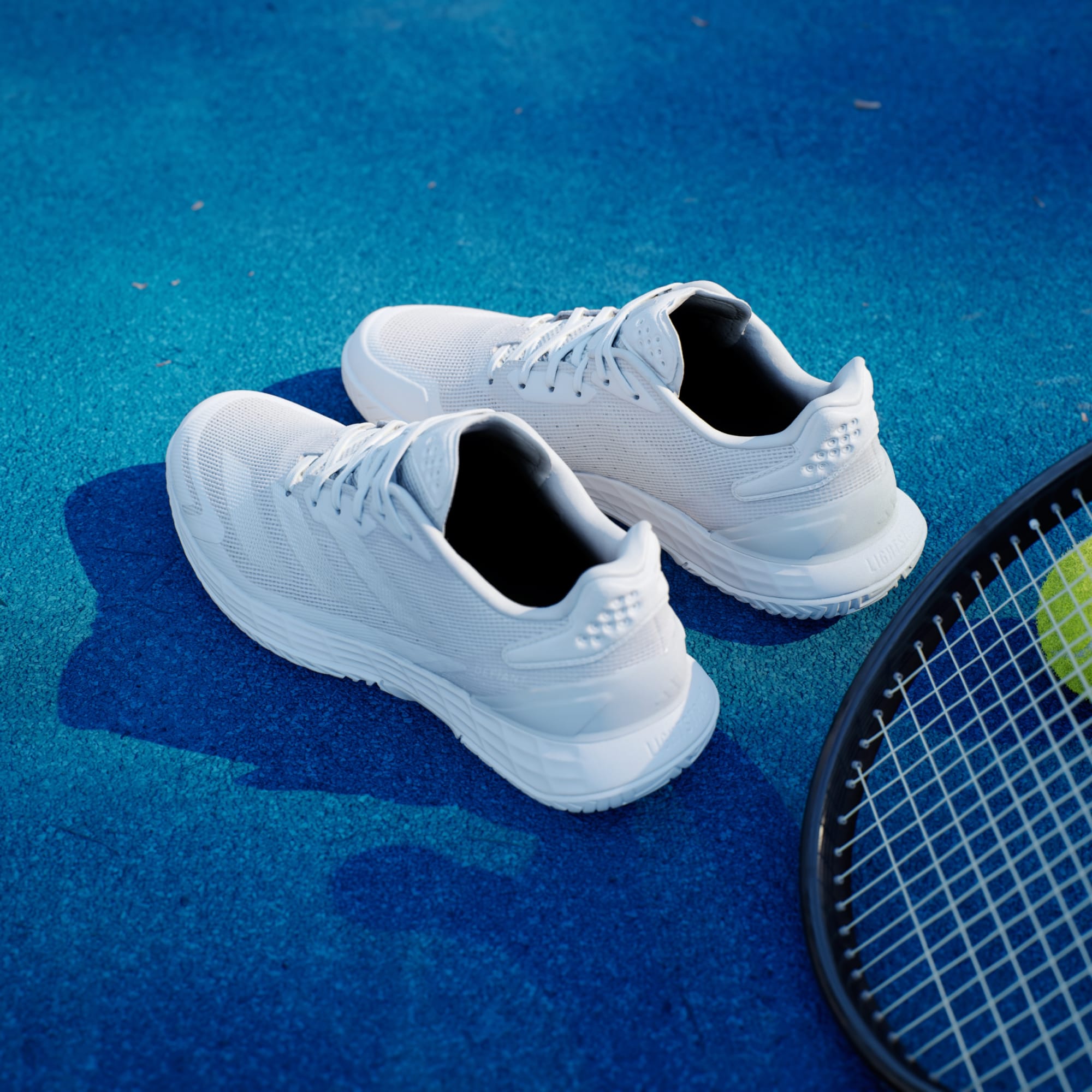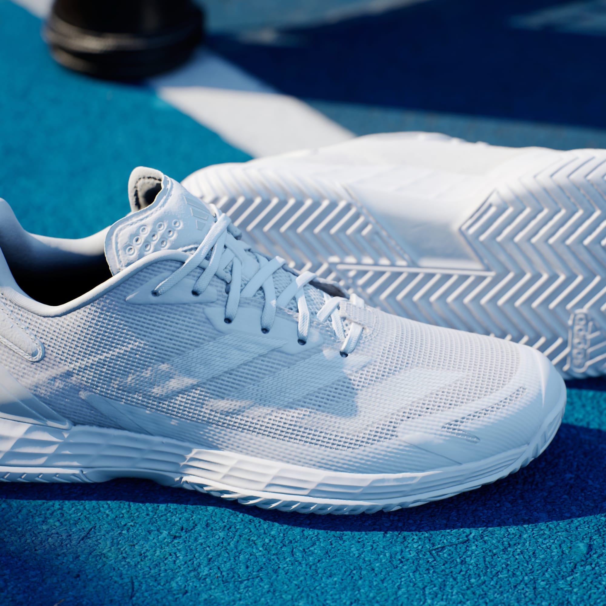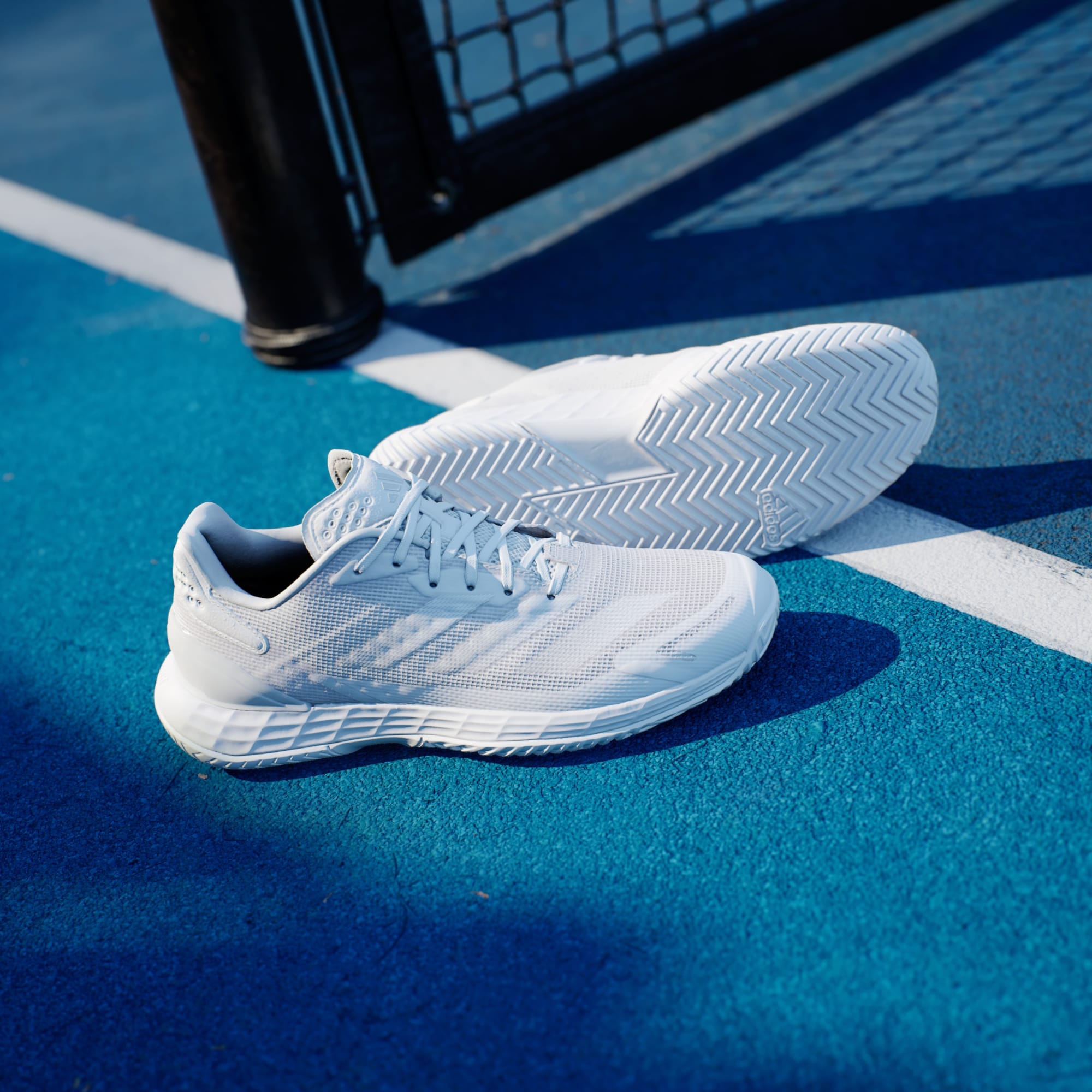 Pensa e move-te velozmente. Estas sapatilhas de ténis adidas oferecem mobilidade total no court. A entressola Lightstrike oferece amortecimento responsivo e velocidade de outro nível, bem como uma sensação de proximidade ao solo. O topo em malha, que trabalha em harmonia com a palmilha moldada e TPU no calcanhar, mantém o pé estável e fresco. Este produto inclui um mínimo de 20% de materiais reciclados. Ao reutilizar materiais já criados, ajudamos a reduzir o desperdício e a nossa dependência de recursos finitos, diminuindo a pegada ecológica dos produtos que fabricamos.
