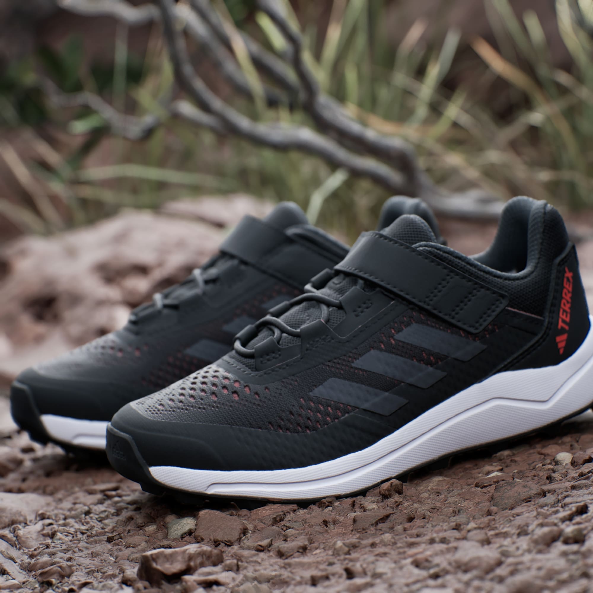 Nenhum terreno está fora dos limites com estas sapatilhas de trail running TERREX da adidas para criança. Leves e confortáveis, permitem que as crianças passem facilmente da estrada para os trilhos, oferecendo o amortecimento e proteção de que os jovens precisam para explorar novas rotas. O topo em malha respirável tem uma proteção contra lama para proteger os dedos da humidade, ao passo que a palmilha OrthoLite® antimicrobiana proporciona suavidade e apoio. A palmilha de medição do comprimento Adifit e a sola Traxion foram combinadas para proporcionar o ajuste e aderência perfeitos. Feito com uma série de materiais reciclados, o topo inclui pelo menos 50% de conteúdo reciclado. Este produto representa uma das nossas soluções para ajudar a acabar com o desperdício de plástico.
