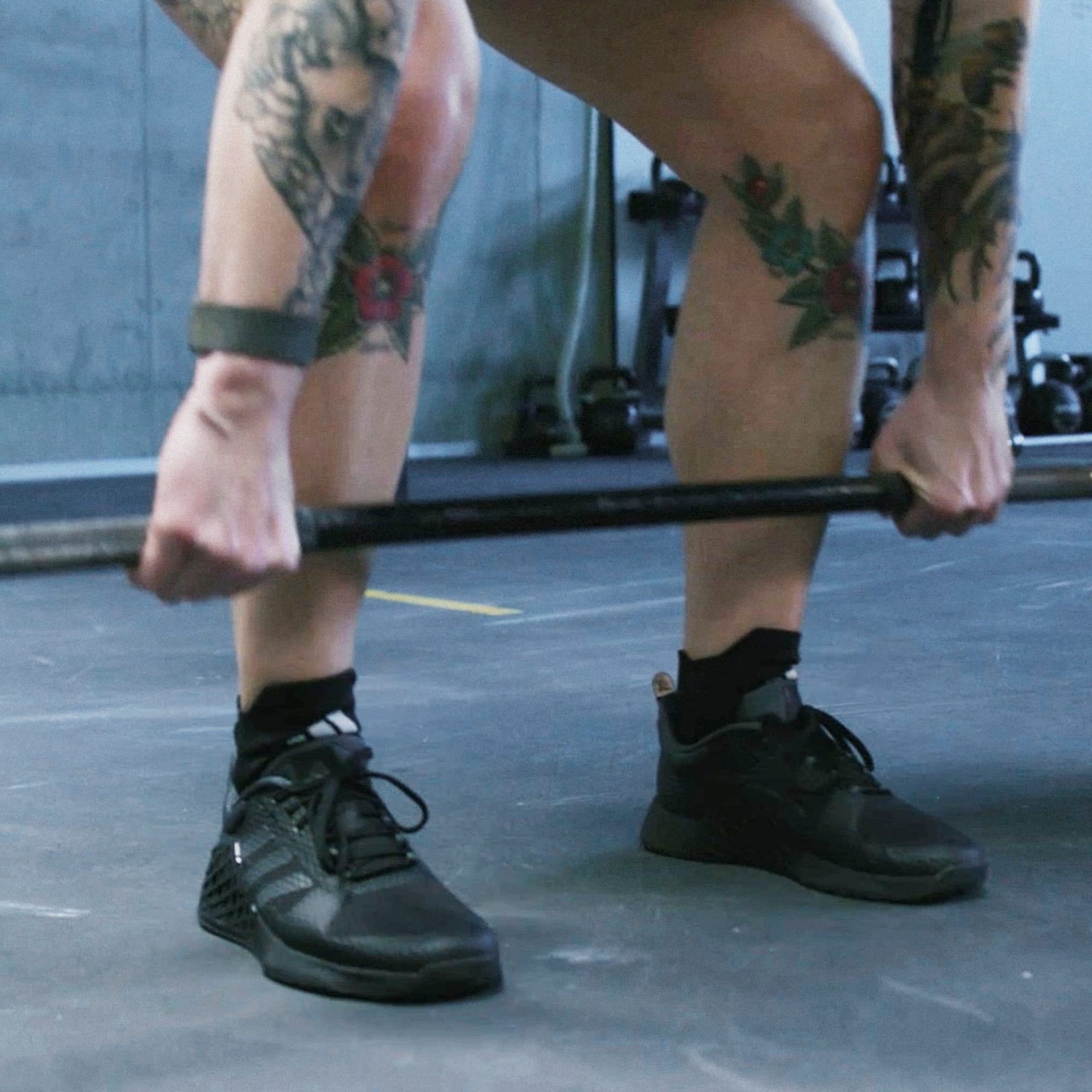 Sapatilhas para treino de força, fabricadas em parte com materiais reciclados.