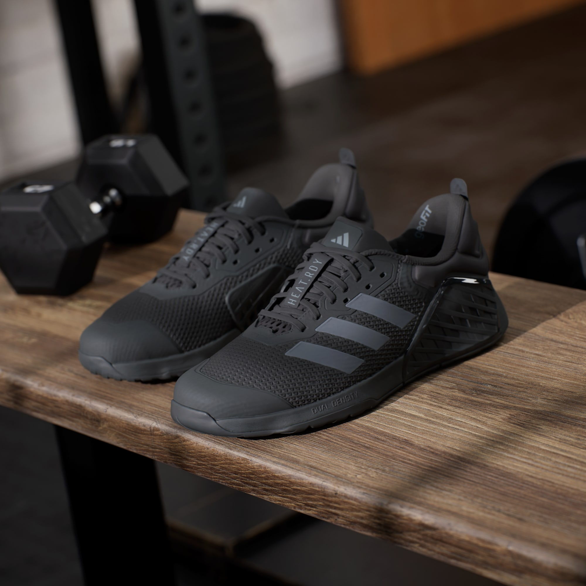 A tecnologia GeoFit da adidas oferece acolchoamento estrategicamente posicionado em torno da área do tornozelo. A Dropset da adidas inclui esta tecnologia no design do calcanhar, garantindo suporte e fixação na hora de manter o calcanhar em posição de levantamento. Umas boas sapatilhas para treino de força exigem que os teus pés se mantenham fixos no chão, já que não queres que os pés deslizem quando levantas pesos. Por essa razão, a tecnologia GeoFit também é também utilizada em calçado de powerlifting e crosstraining.