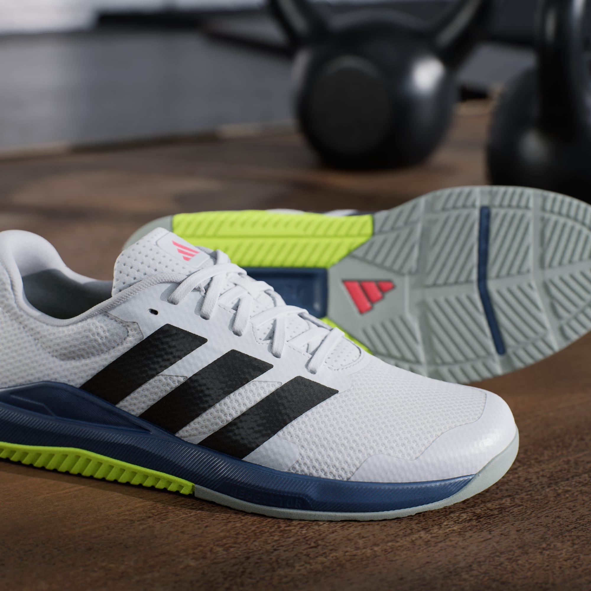 Supera os teus limites na sala de musculação. Estas sapatilhas de treino adidas foram feitas para exercícios de força. Uma biqueira larga, um perfil baixo e uma sola com padrão de asa multidirecional mantêm-te estável e em controlo durante movimentos explosivos e levantamentos pesados. O topo em malha respirável é reforçado com camadas 3D para apoio adicional.