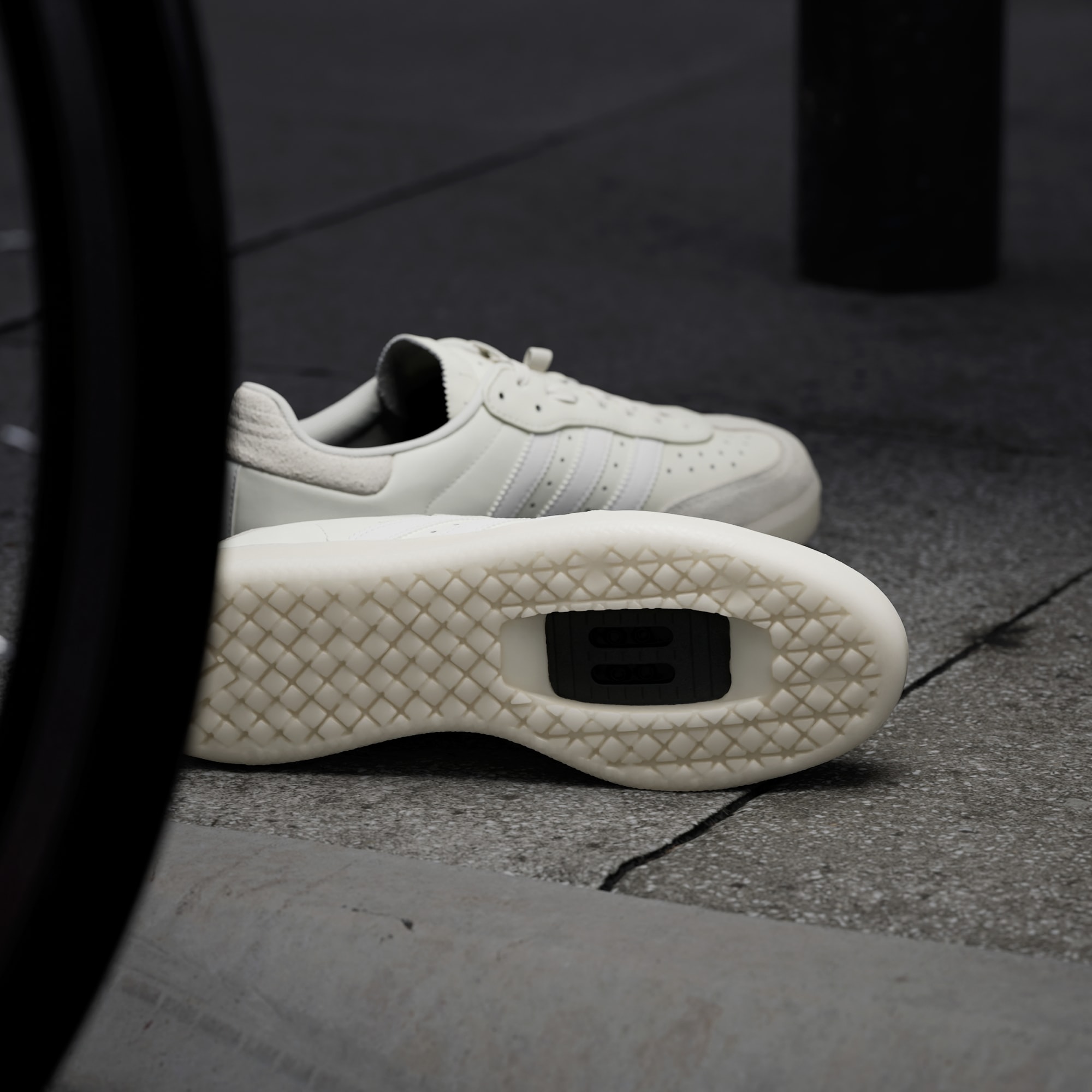 Transita das deslocações do dia a dia para o trabalho e para o convívio com o estilo icónico das adidas Samba nos teus pés. Desenhadas a pensar nas pedaladas casuais e nas deslocações do dia a dia, as Velosamba são sapatilhas de ciclismo discretas. São compatíveis com sistemas de encaixe duplo, com uma placa da entressola com comprimento de dois terços que enrijece o antepé para pedaladas eficientes, mantendo uma flexibilidade natural e confortável para caminhar. Pormenores refletores nas 3 riscas acrescentam visibilidade em condições de luminosidade baixa. Os atacadores elásticos mantêm as pontas dos atacadores seguras.