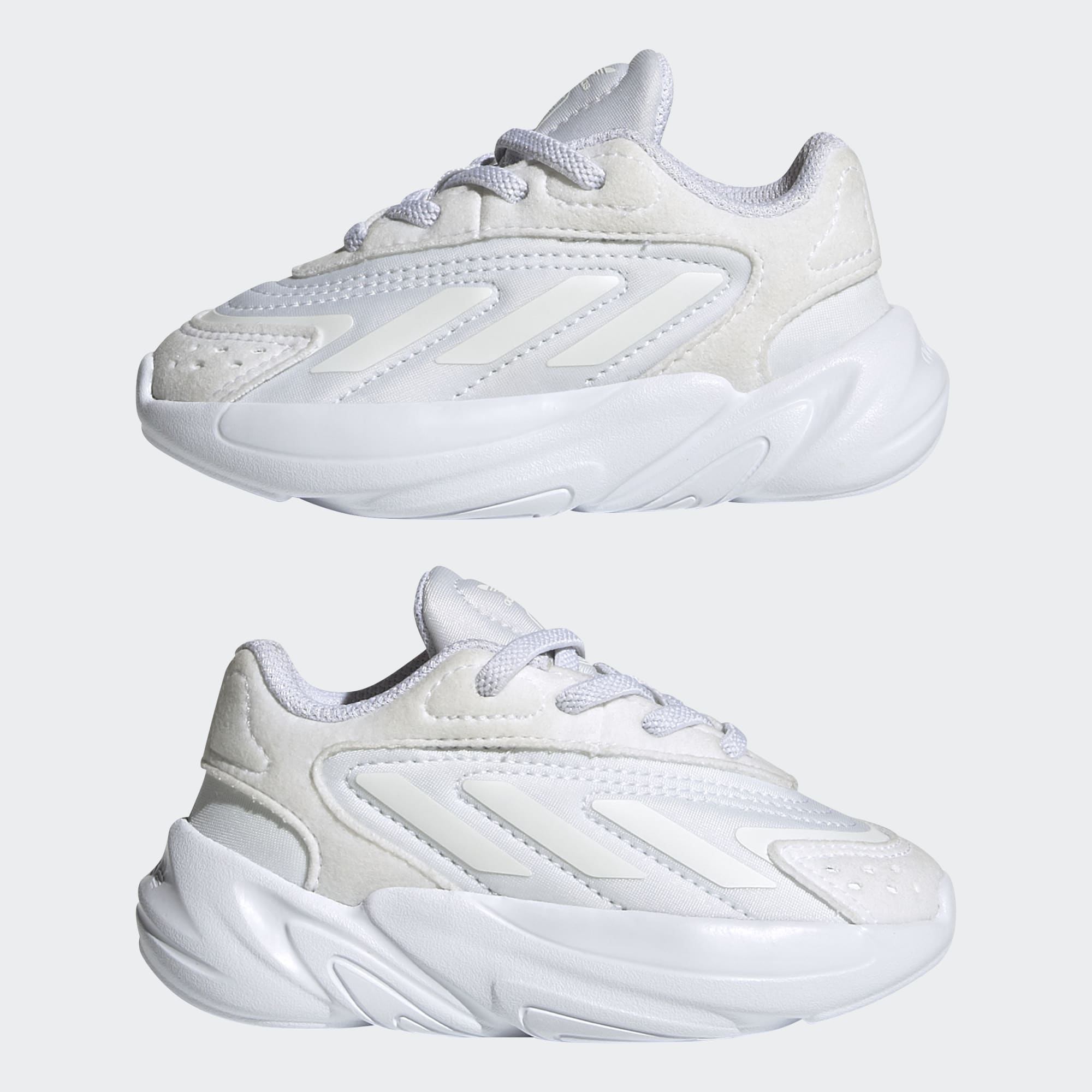 Os nossos pequeninos são o futuro. E eles chegarão lá à sua maneira, ao seu próprio ritmo. Mas não há razão para que estas adidas Ozelia não os possam ajudar na viagem. Estas sapatilhas estão repletas de amortecimento suave e aconchegante para ajudar os bebés a caminharem (ou gatinharem, ou titubearem) em conforto. Este produto foi feito com material reciclado, como parte do nosso objetivo para acabar com o desperdício de plástico. 20% das peças utilizadas para fabricar o topo são feitas com um mínimo de 50% de conteúdo reciclado.