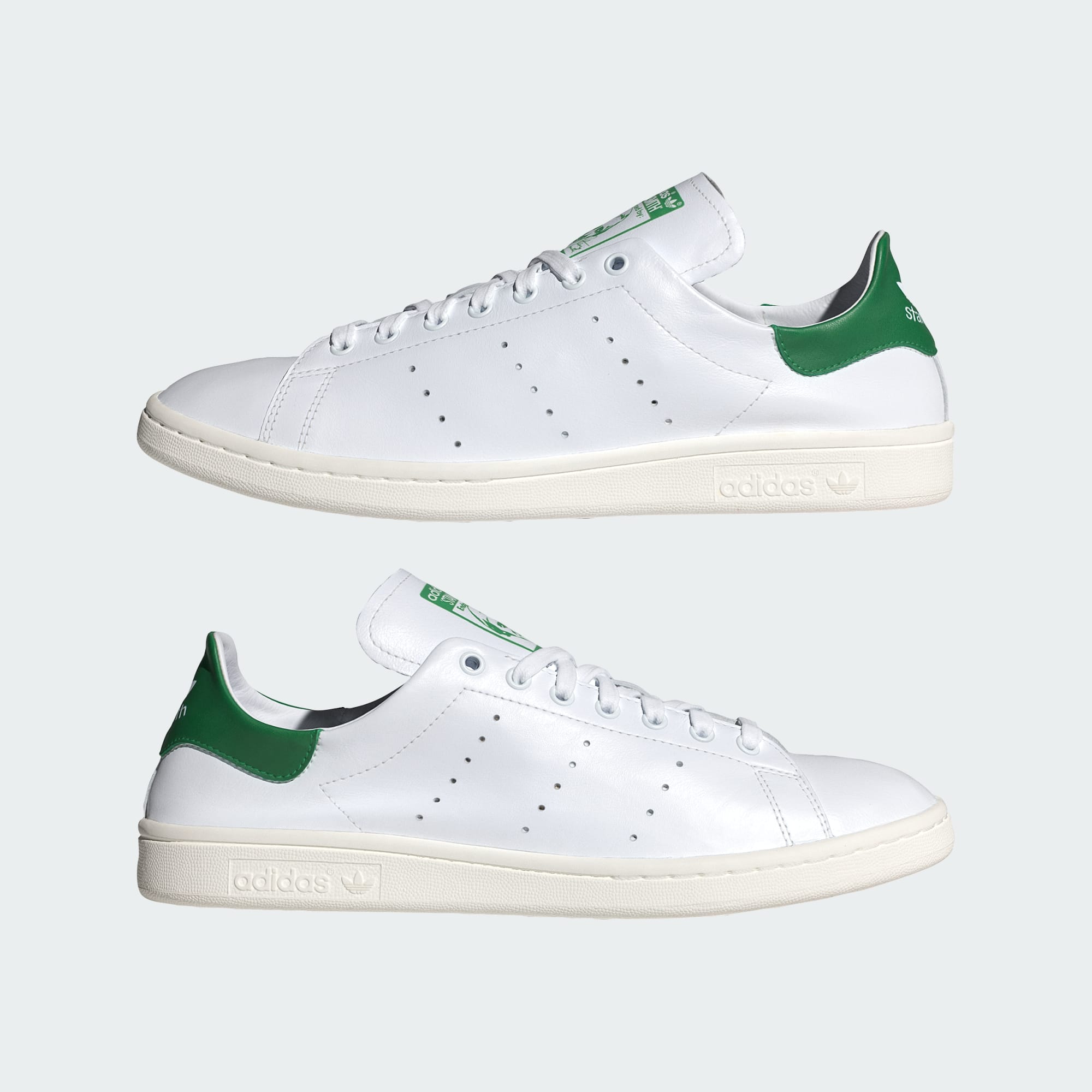 Sapatilhas Stan Smith minimalistas com uma silhueta maleável.