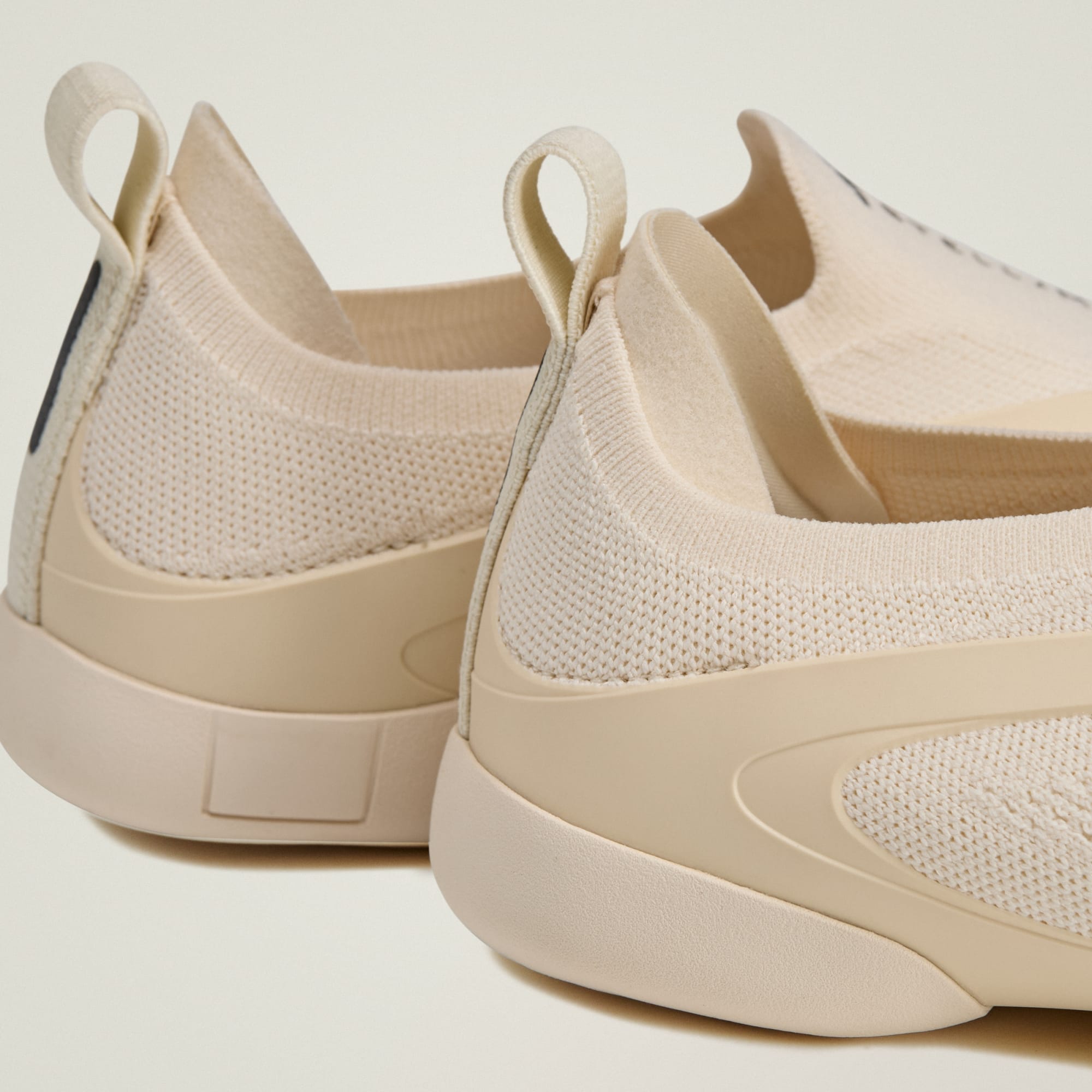 Calçado slip-on de baixo perfil, feito com materiais veganos.