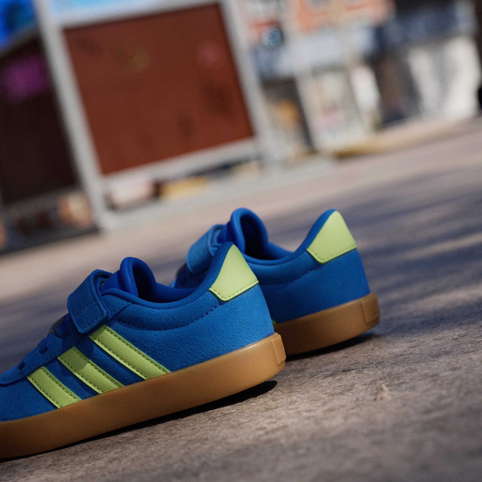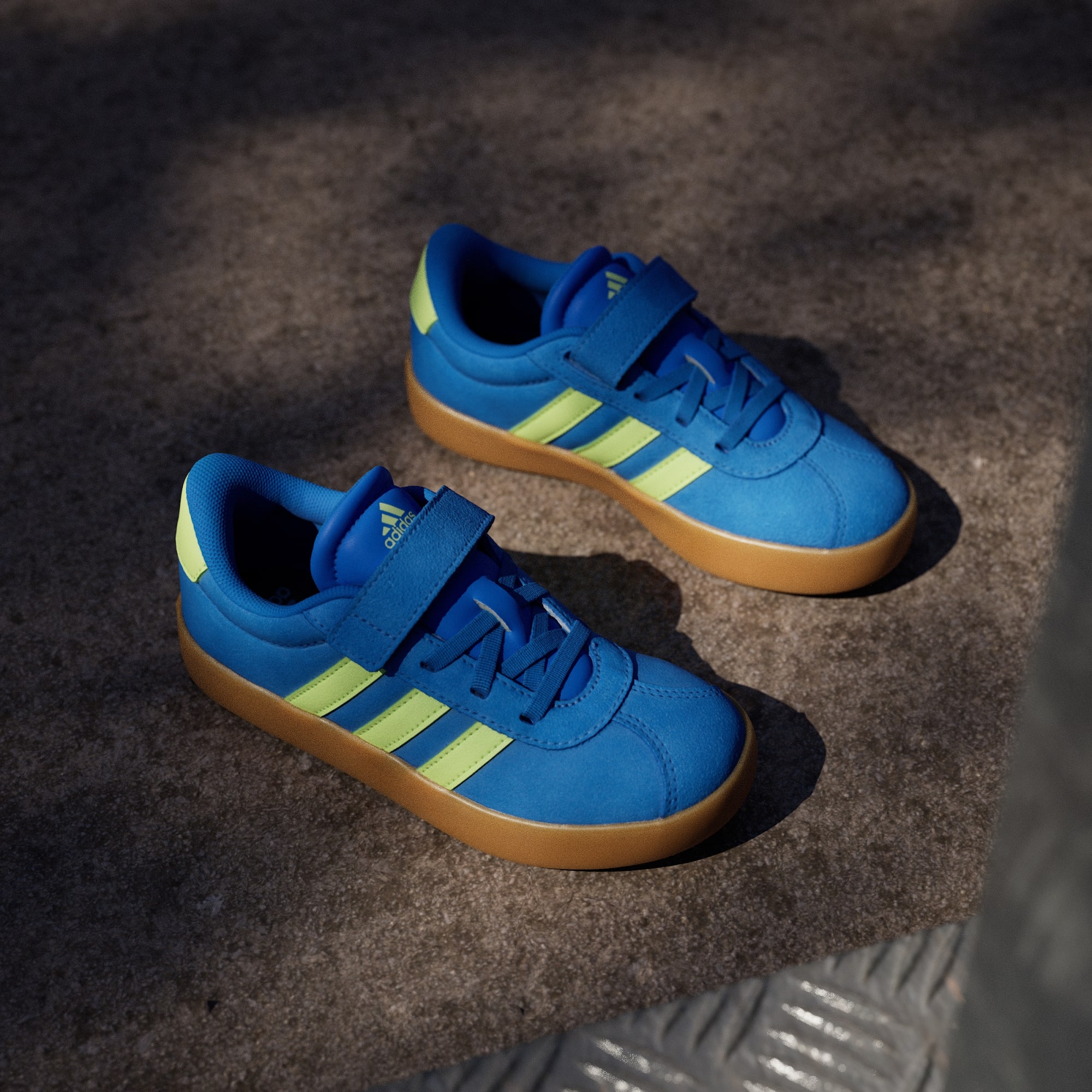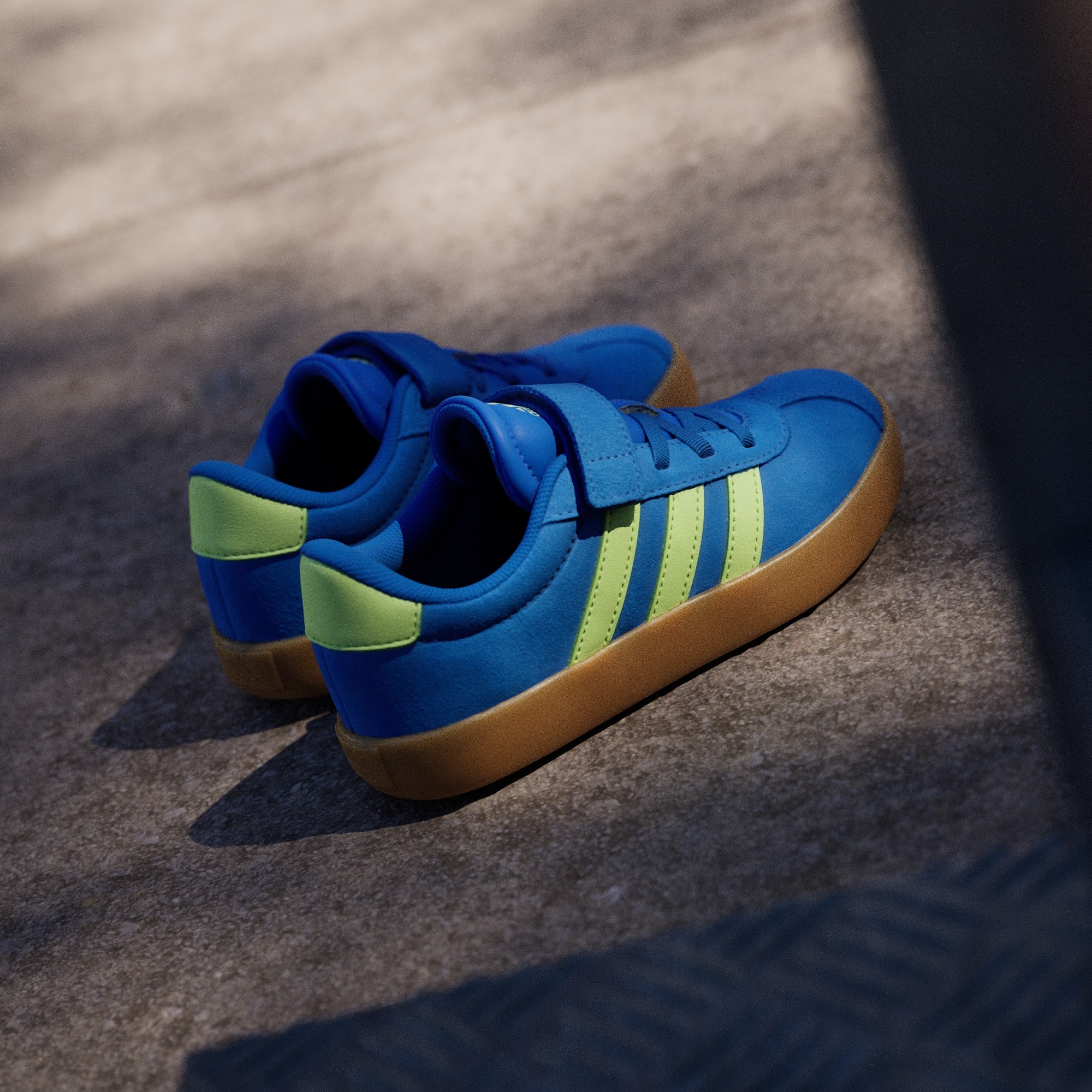 Quando estão em movimento, os teus filhos precisam de sapatilhas que os acompanhem. As correias aderentes destas sapatilhas adidas facilitam ao calçar e descalçar, ao passo que o topo em camurça, o forro em têxtil e a sola de borracha vulcanizada aguentam as aventuras no skate park ou no parque infantil. Confortáveis e resistentes, estas sapatilhas estão prontas para rolar onde quer que a curiosidade de uma criança as leve.