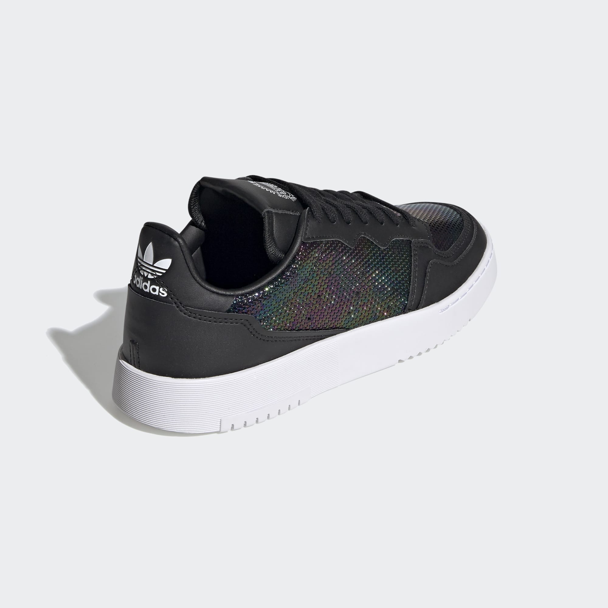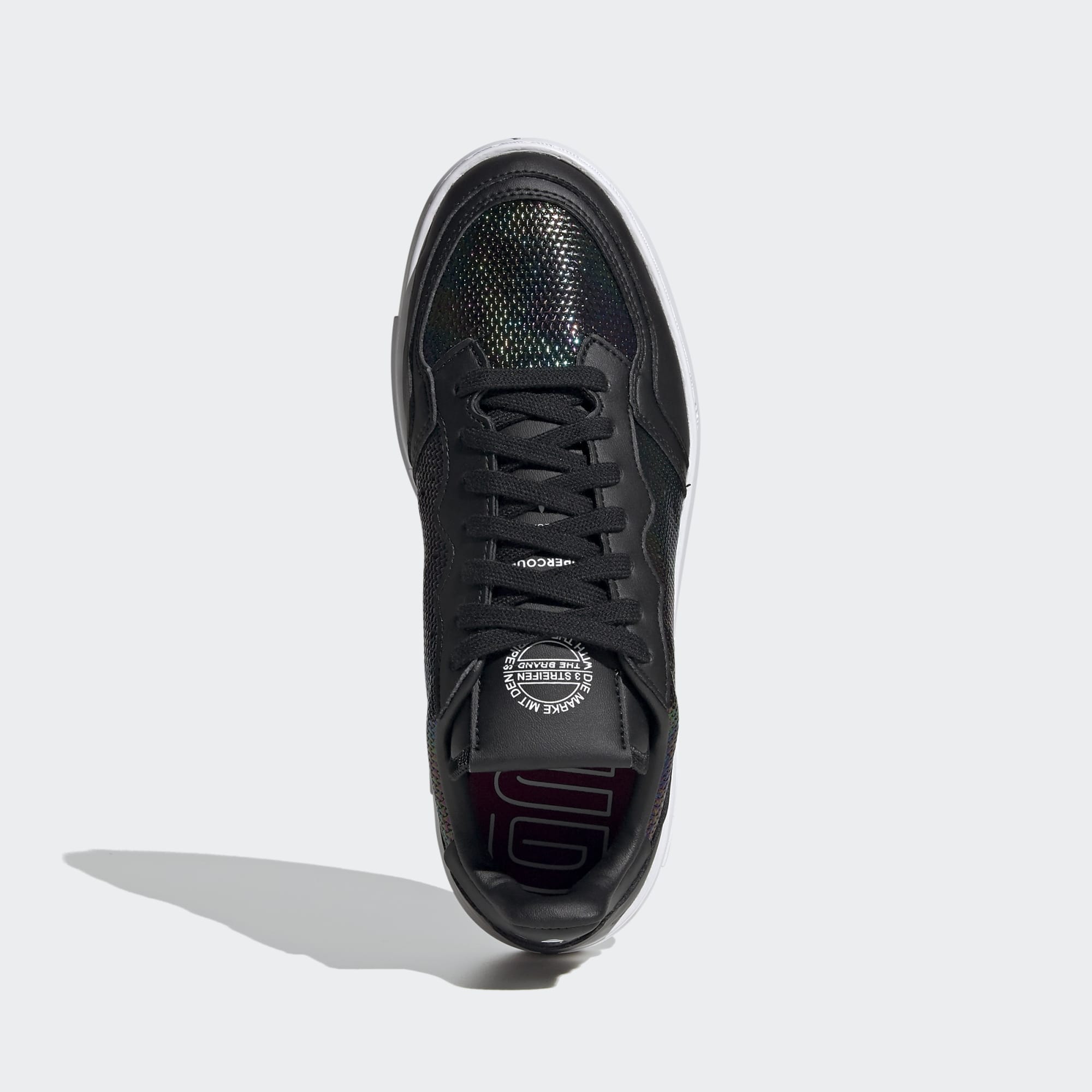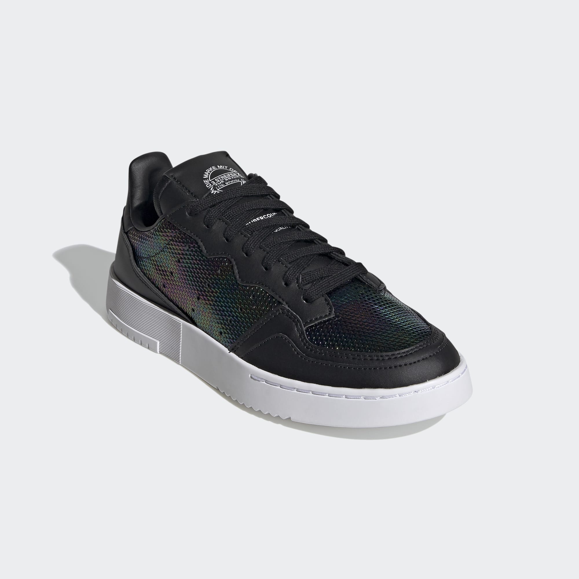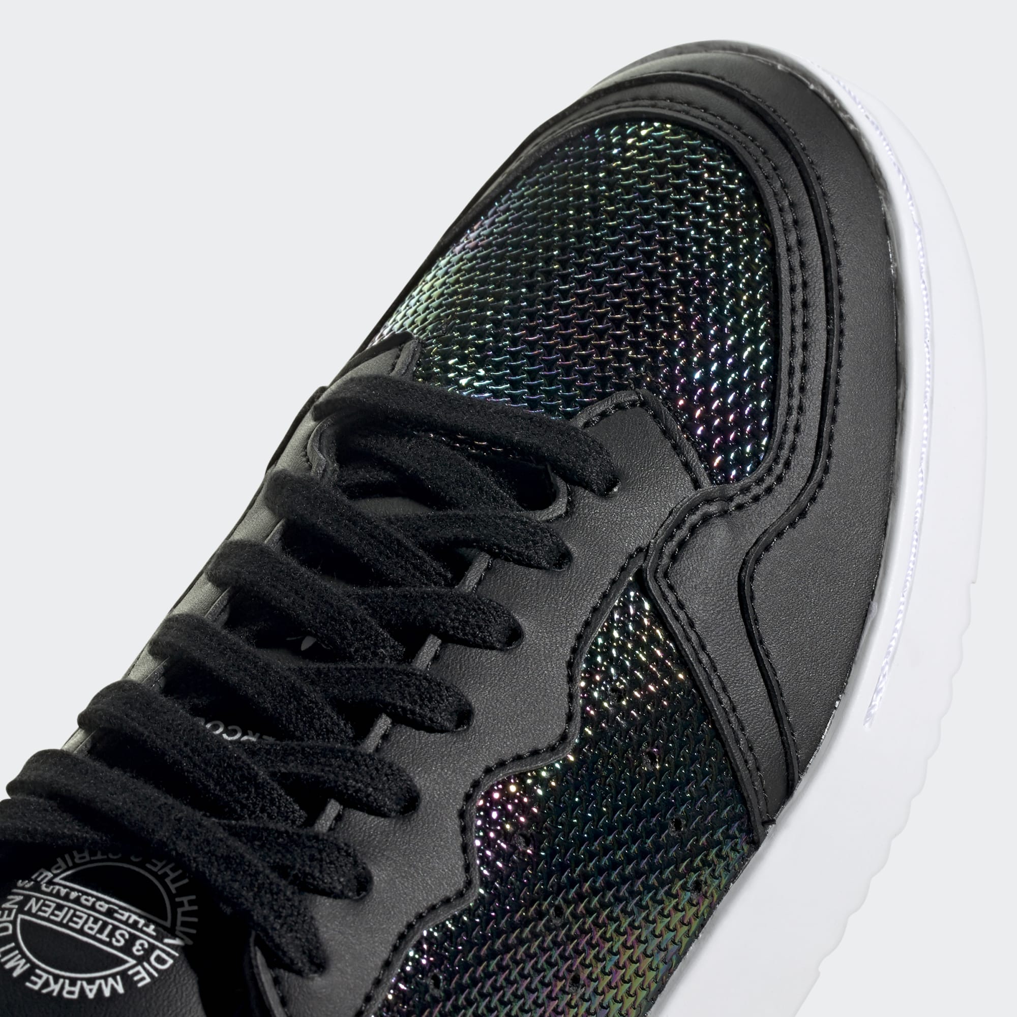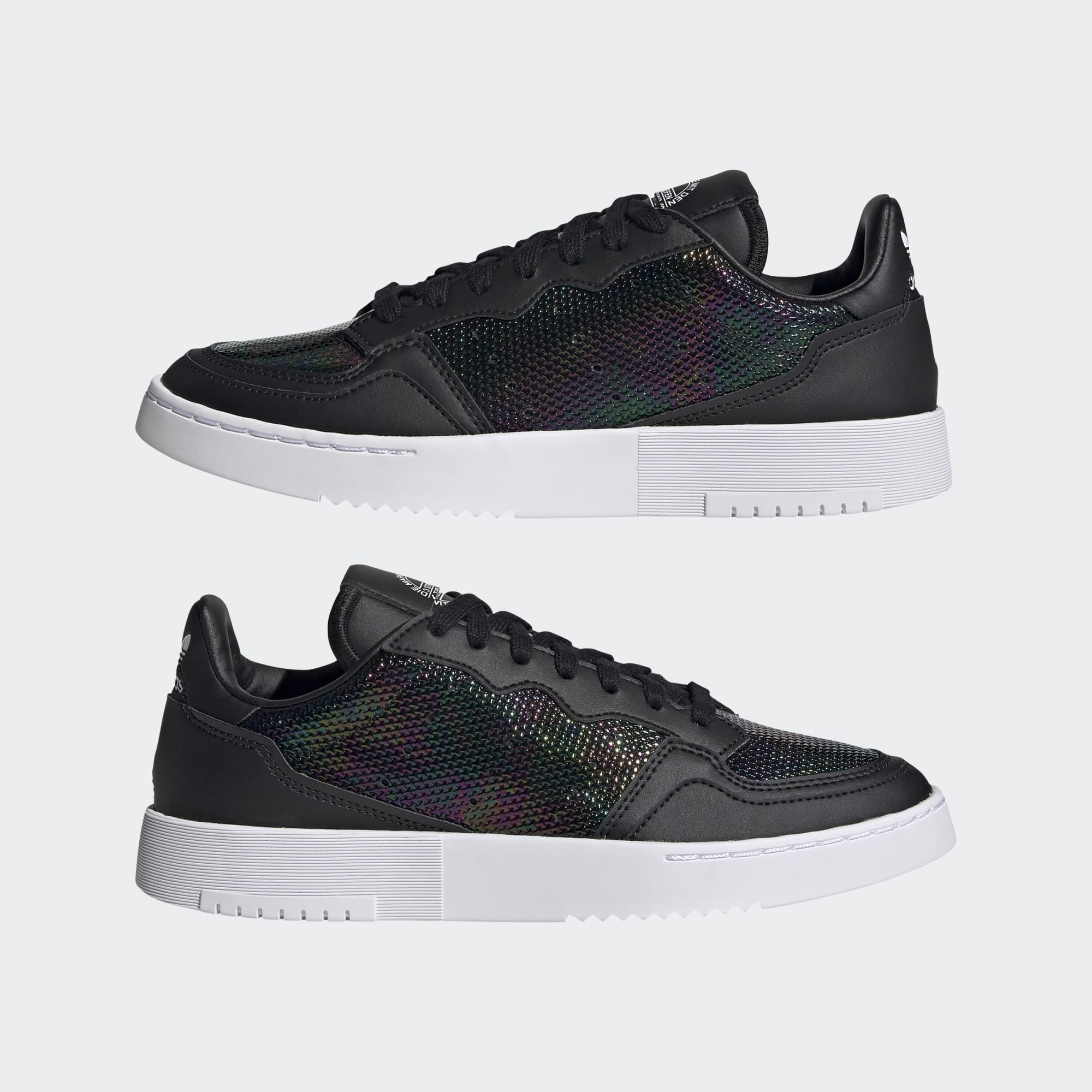 Não tens dramas em casa ou no trabalho. Mas drama nos pés? Claro! Parte da coleção Out Loud, estes sapatos Supercourt da adidas exibem um acabamento semelhante a um derrame de crude no design em pele envernizada. Usa-os onde quiseres chamar a atenção.