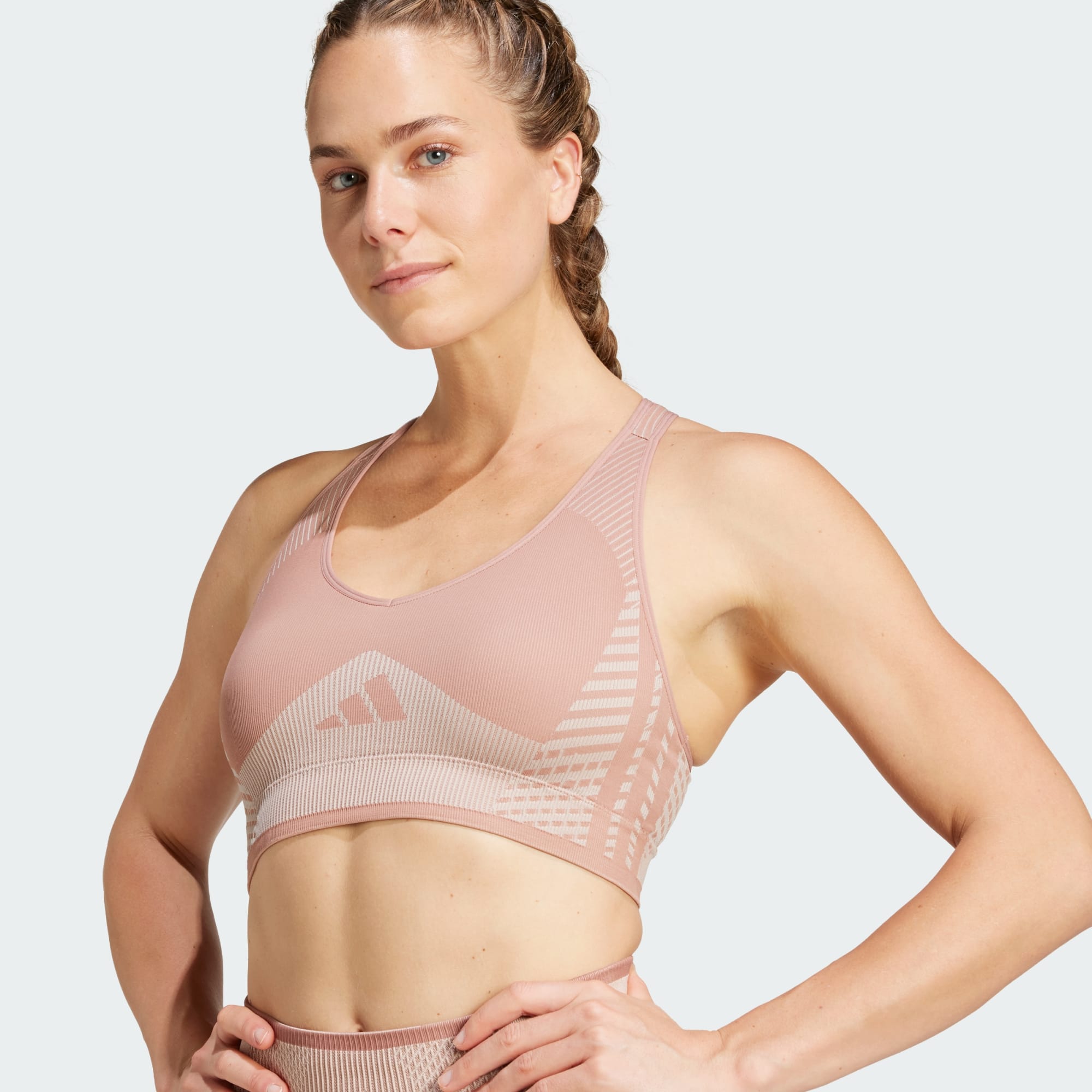 Este sutiã de desporto adidas foi desenhado para ioga, Pilates e treinos de impacto baixo. O design sem costuras oferece conforto sem distrações, ao passo que as alças clássicas reduzem a pressão nos ombros e oferecem apoio nas inversões e nos exercícios no chão. O CLIMACOOL afasta a transpiração para um desempenho fresco, seco e sem distrações. Este produto foi feito com um mínimo de 70% de materiais reciclados. Ao reutilizar materiais já criados, ajudamos a reduzir o desperdício e a nossa dependência de recursos finitos, diminuindo a pegada ecológica dos produtos que fabricamos. O CLIMACOOL ajuda a gerir a transpiração com materiais que eliminam e lidam com a transpiração rapidamente. As fibras de secagem rápida conferem uma sensação de frescura.