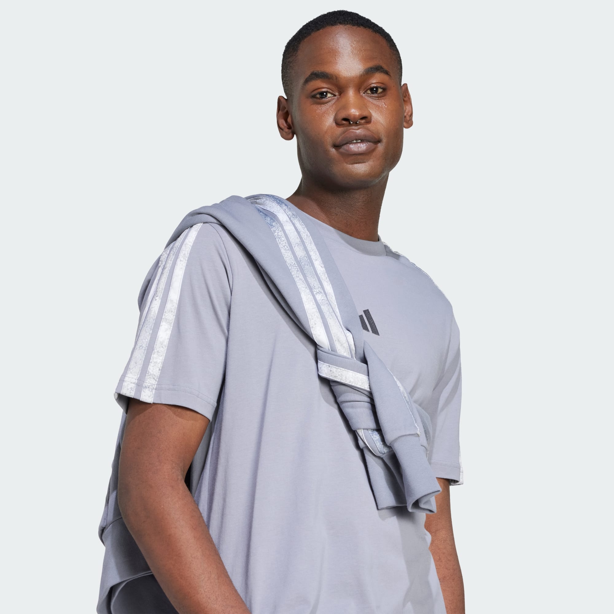 Uma Gola Arredondada Clássica de Algodão com uma nova Versão das 3 Riscas.