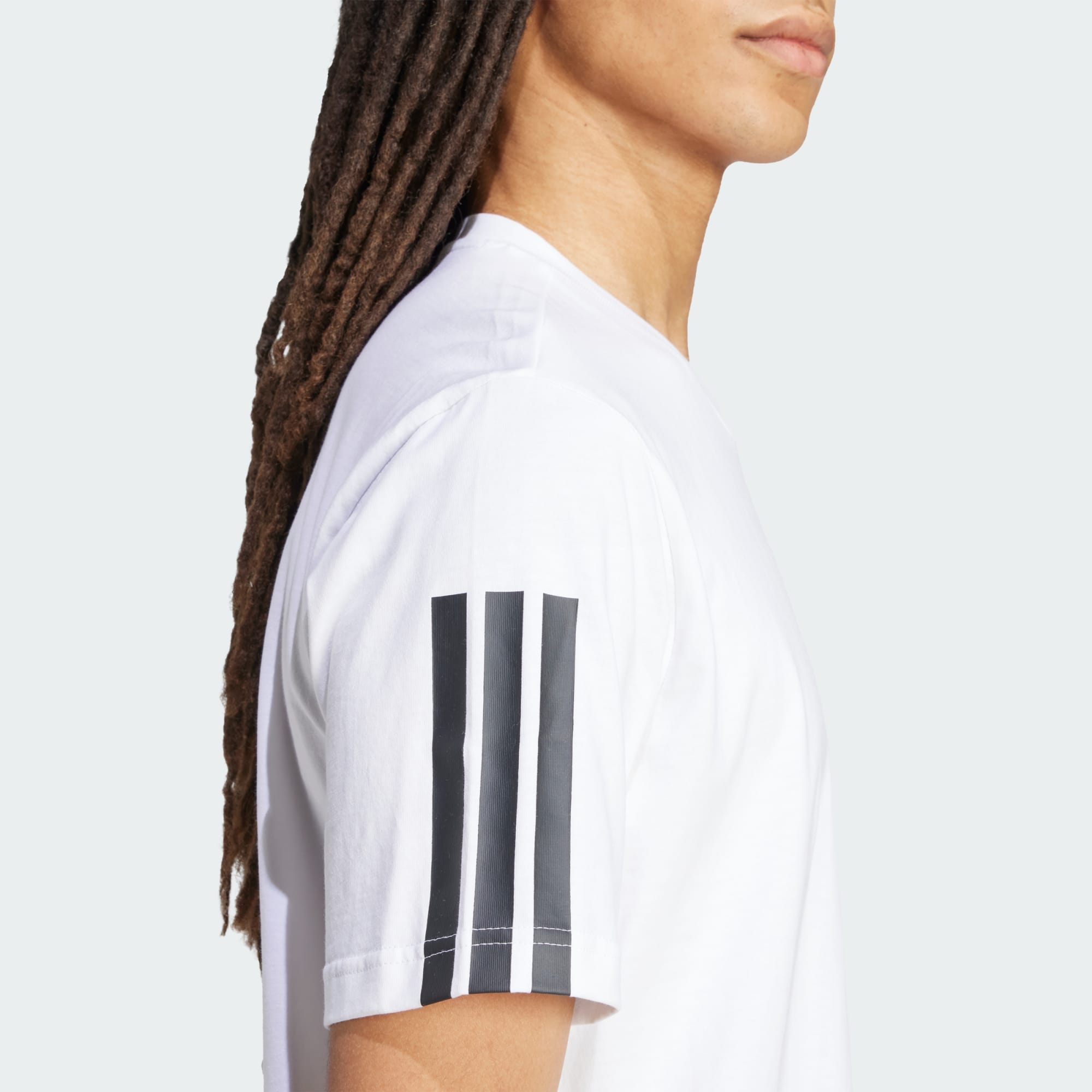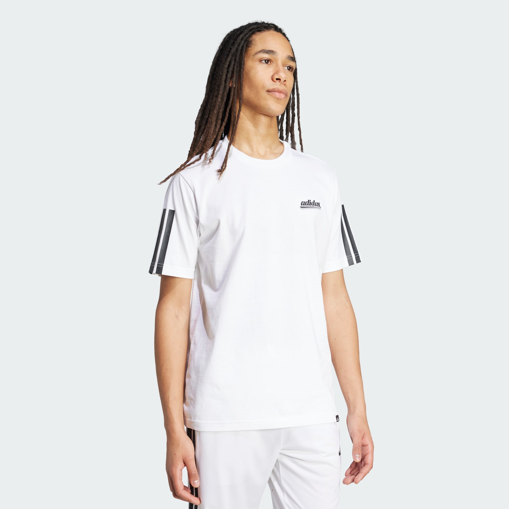 Esta t-shirt adidas traz uma nova perspetiva ao conforto casual. A t-shirt é composta por algodão macio e mantém-te confortável quer estejas a relaxar em casa ou a sair durante o dia. As 3 riscas que se encontram presentes nas mangas e o logótipo escrito na frente conferem um toque desportivo.