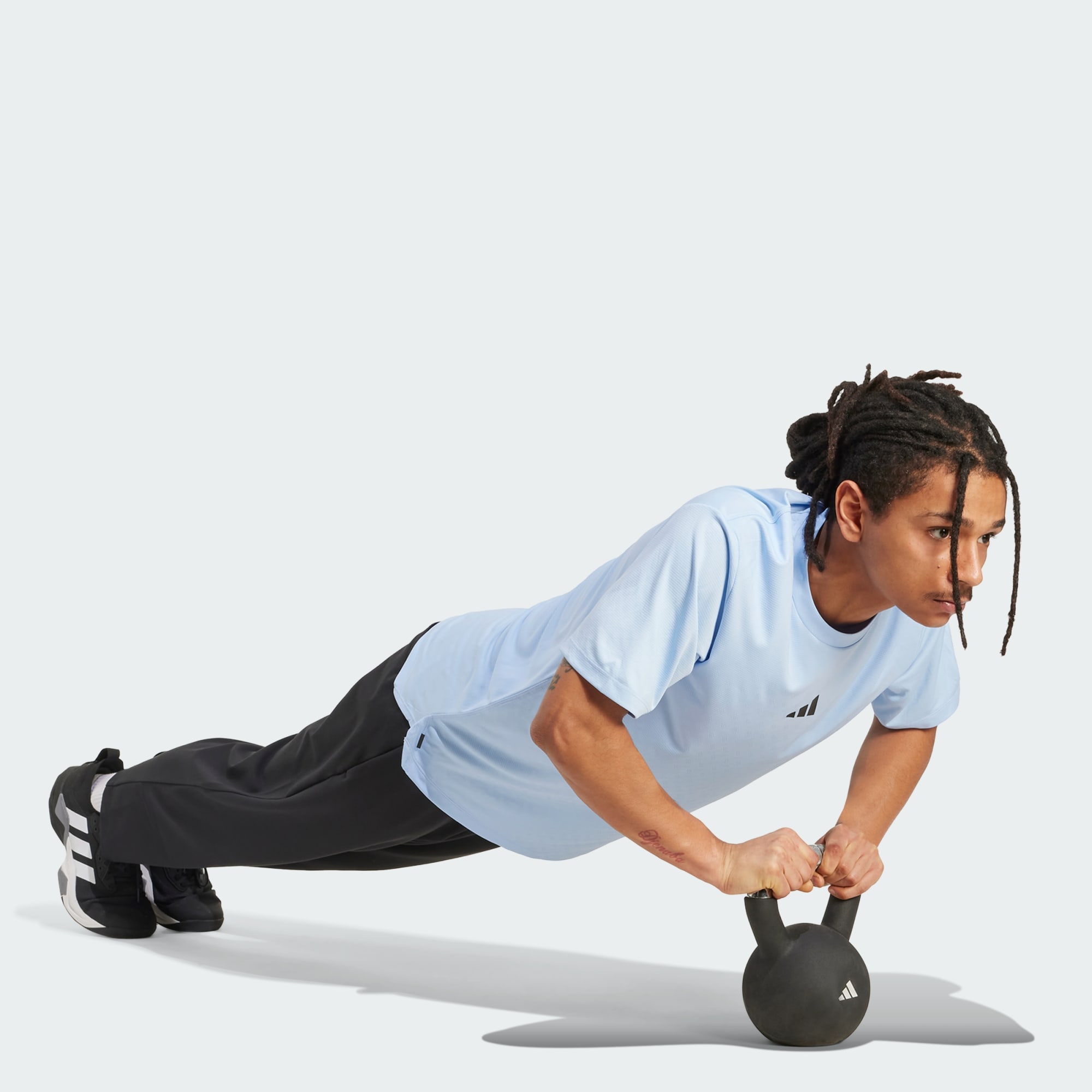 Usa esta t-shirt adidas no ginásio nos dias em que quiseres marcar pontos. O corte estreito e o tecido de alto desempenho dão-te a confiança necessária para ires em frente. A tecnologia CLIMACOOL elimina o suor para um desempenho fresco, seco e sem distrações. O CLIMACOOL ajuda a gerir o suor com materiais que eliminam e gerem o suor rapidamente. As suas fibras de secagem rápida dão-te uma sensação de pele fresca. Concebida para treinos híbridos e um desempenho versátil.