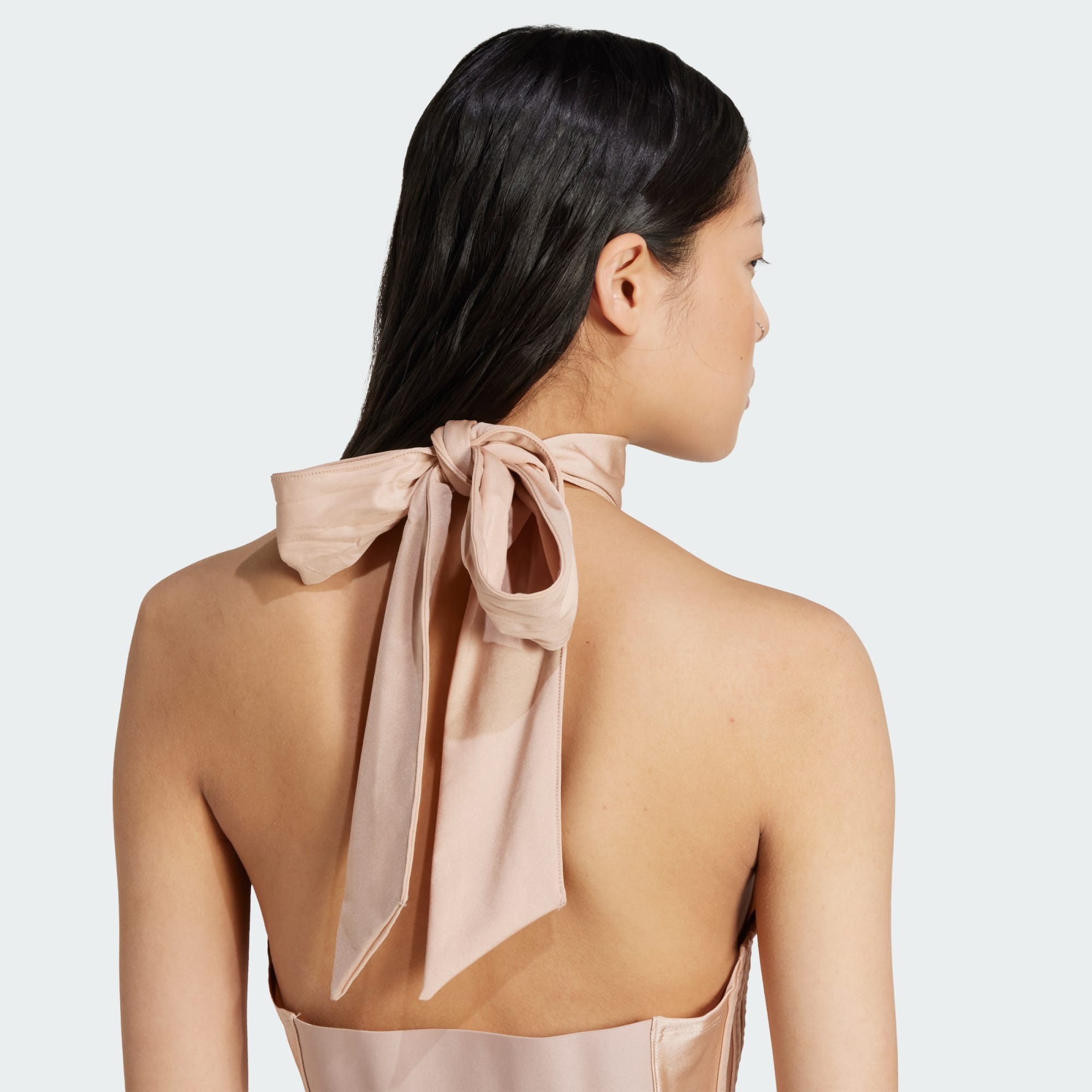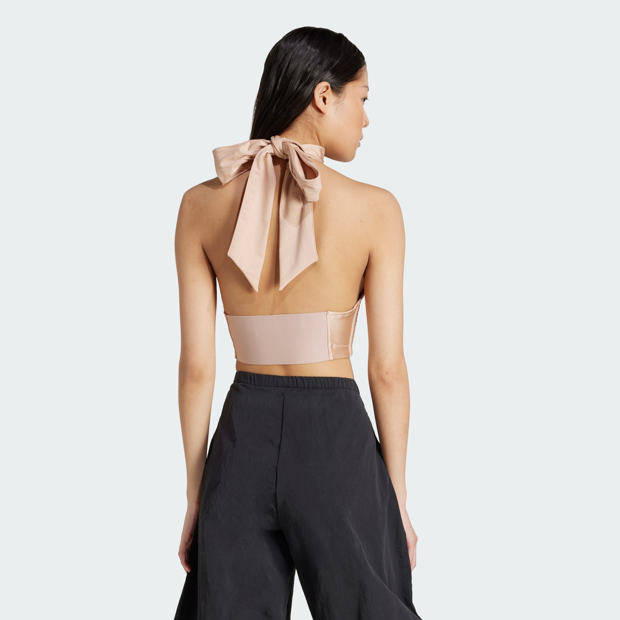 Um top curto inspirado no ballet, com um lisonjeiro nó no pescoço.