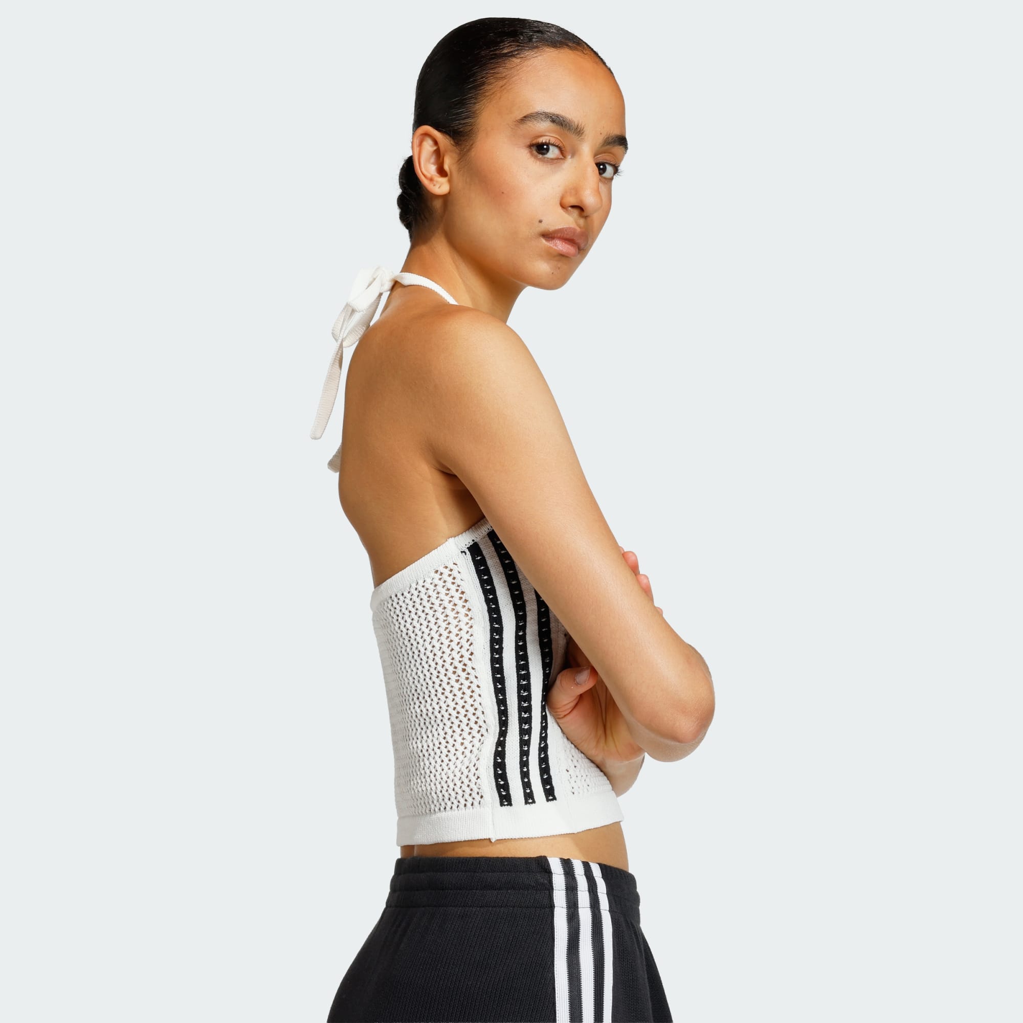 O vestuário de desporto clássico alia-se à elegância intemporal no nosso top de croché tricotado. Concebido para ser um complemento de guarda-fato simples, este top oferece uma nova versão das tuas silhuetas favoritas. Com um corte justo para um visual lisonjeiro, o fecho de cordão oferece conforto e simplicidade. Uma construção em malha acrescenta um toque de sofisticação e textura, seja vestido de forma casual ou elegante. Este top é para teres bom aspeto e para te sentires bem. Abraçamos o espírito adidas Originals com esta peça versátil que complementa o nosso vestuário de desporto clássico.