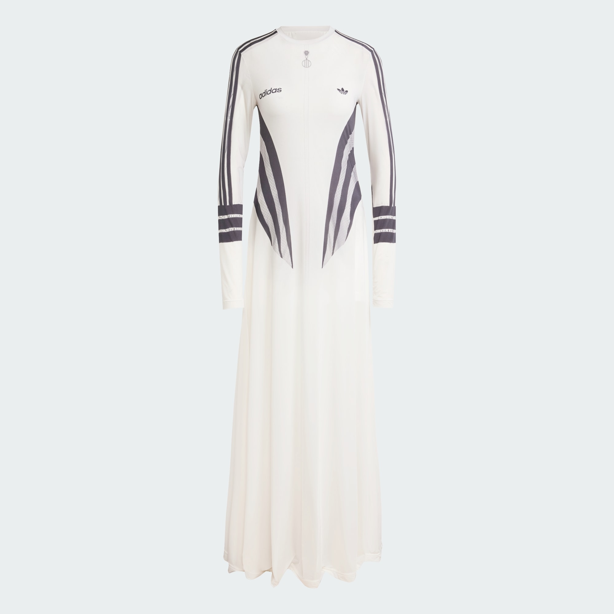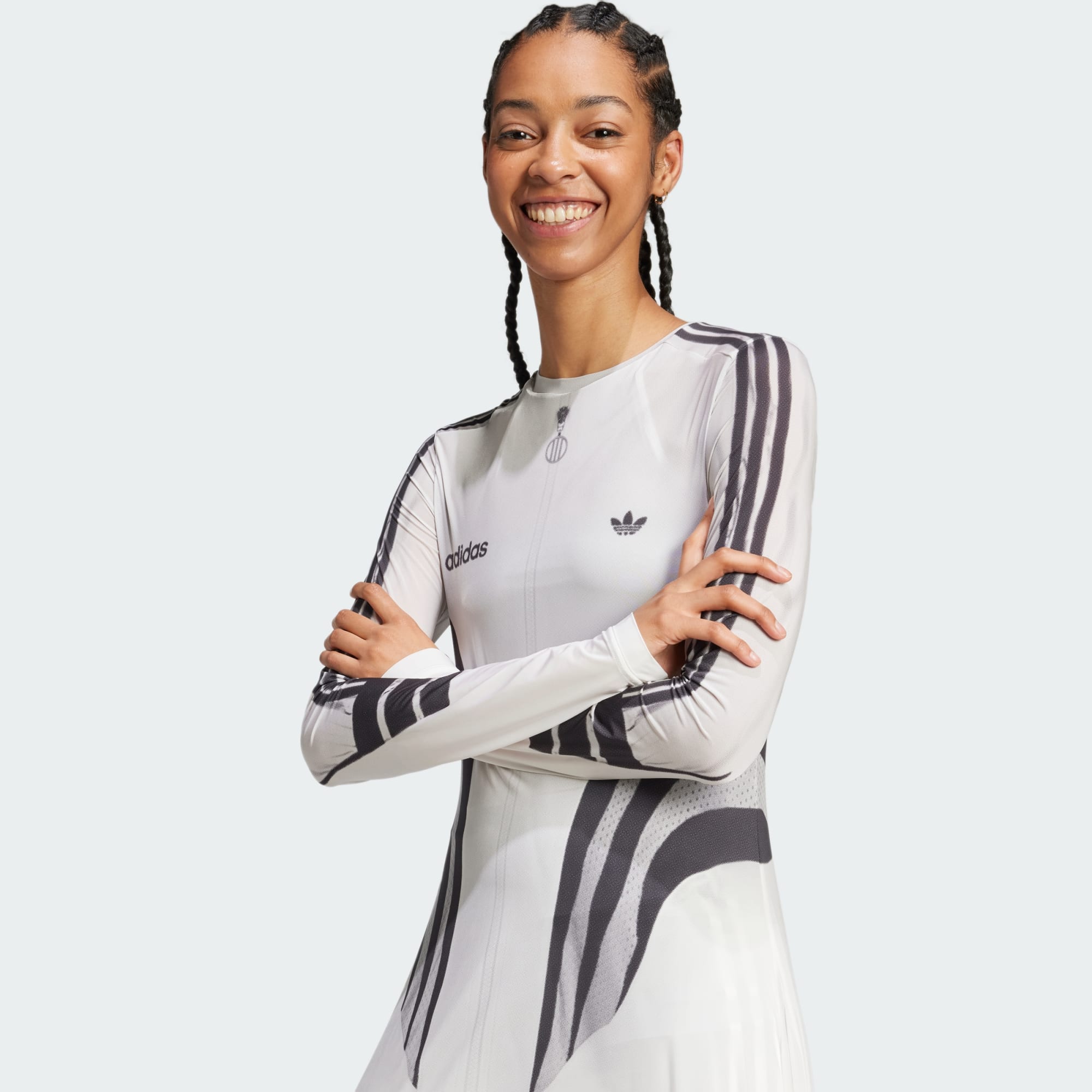 Afirma-te com este vestido com estampado por sublimação Atlanta da adidas. Feito em tecido leve e elástico, a sua silhueta impactante cria um look dramático, envolvendo a parte de cima do teu corpo e caindo da cintura até ao chão com um drapeado largo e fluido. O estampado das linhas dos arquivos Atlanta faz uma aparição inegável em cores contrastantes. Inclui um négligé para usares por baixo, se assim quiseres.